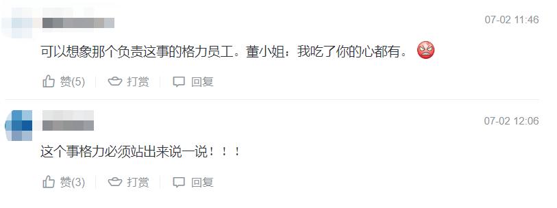 有网友表示,对于涉事员工,董明珠可能“吃了他的心都有”。也有网友认为,格力需要出面进行回应和解释。