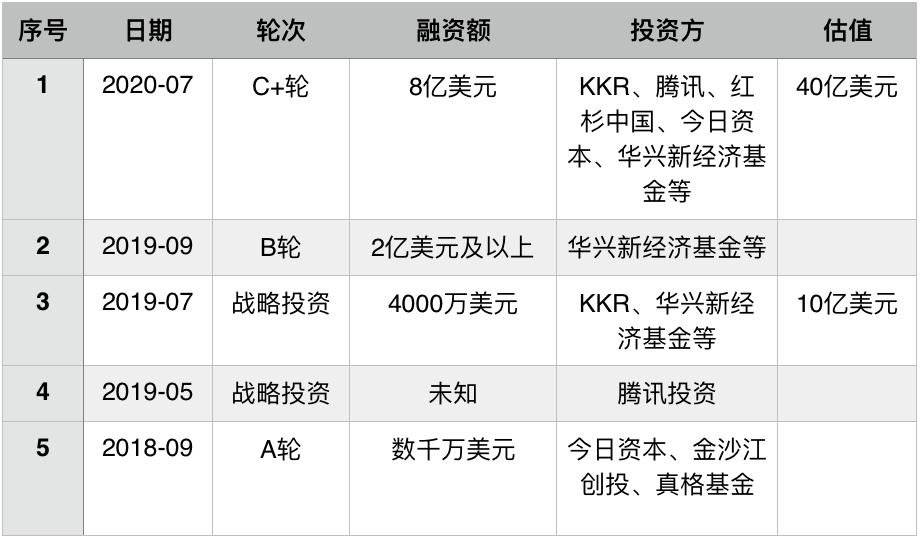 本轮领投方为KKR,红杉中国、腾讯、今日资本、华兴新经济基金、钟鼎资本等跟投。其中红杉中国属首次参投,KKR、腾讯、今日资本、华兴新经济基金、钟鼎资本均为老股东。