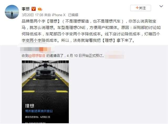 甚至理想汽车名称由原本的“理想智造”变更为“理想”,理由也是四个字变两个字,能够降低车标以及线下店灯箱的制造成本。