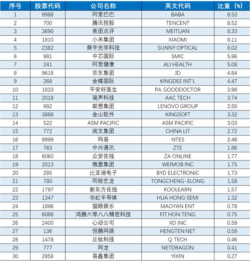 选股范畴包括阿里巴巴、美团点评、腾讯控股、小米集团等公司。