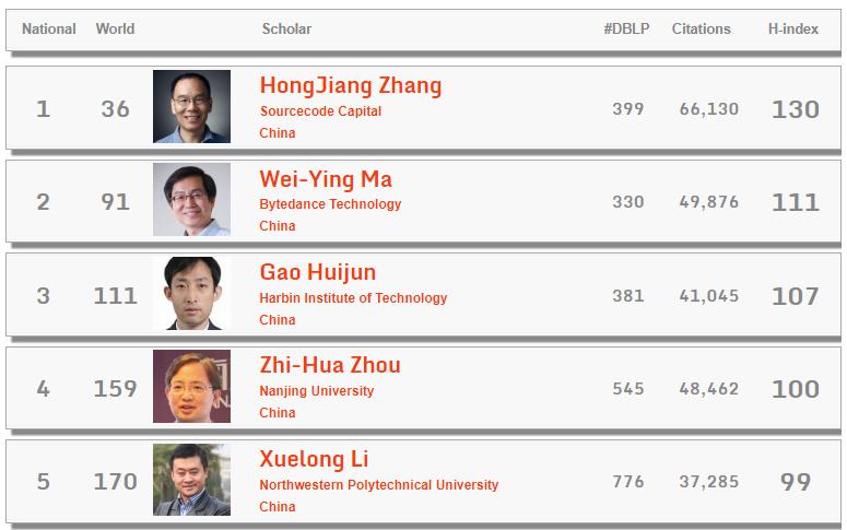 在Guide2Research发布的2020全球顶尖计算机科学家排名中,马维英位居中国大陆第二位,仅次于源码资本合伙人张宏江,是仍在企业中冲锋的顶级AI人才。