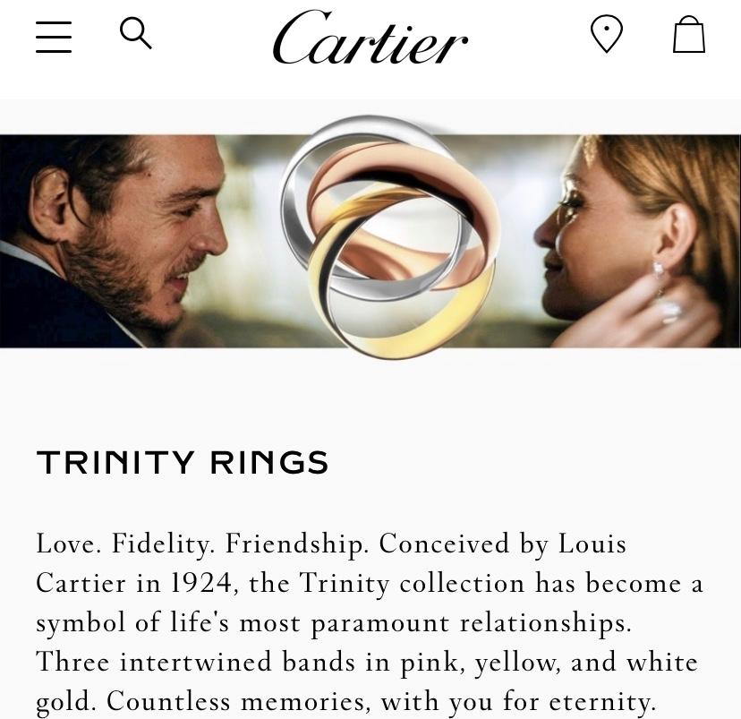 因为这本是为七夕情人节做的节日营销,包括点开此款戒指的产品详情页,显示的是“卡地亚七夕挚爱礼遇”的营销方案,模特佩戴戒指的手指也是无名指。