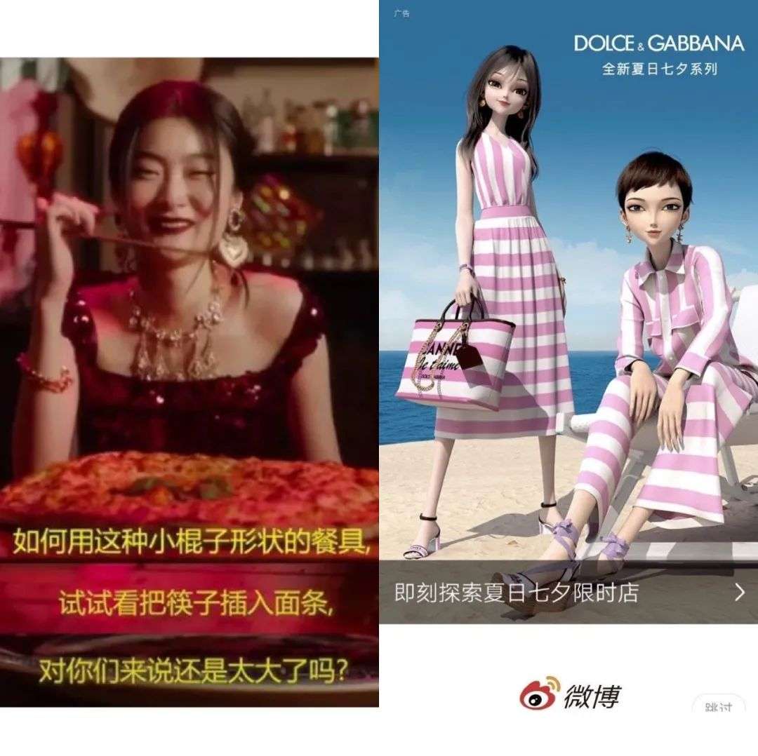 广告片中一位黄皮肤亚裔女子两只手各拿起一根筷子,模仿使用刀叉的方法来吃披萨,台词设计和模特的肢体语言都展现着对中国文化的不尊重。一石激起千层浪,中国多位明星联合抵制,纷纷拒绝走当月的品牌大秀,D&G最终宣布取消上海大秀。
