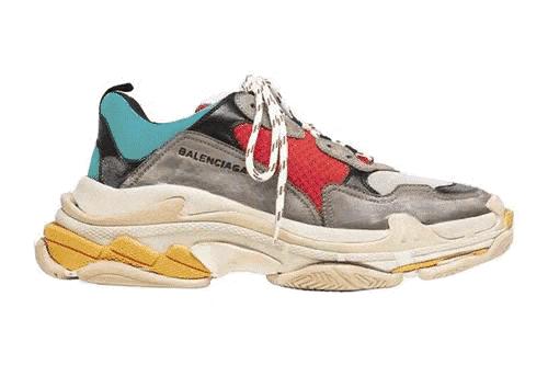 要说最显著的Ugly-Chic单品案例的话,风靡全球一时的“老爹鞋”必须榜上有名,以巴黎世家为首推出的老爹鞋单品,直到现在仍有余温。