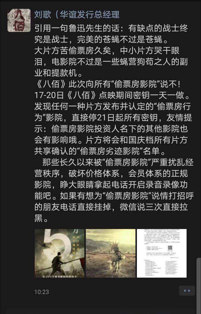 华谊解释称这是为了惩罚“偷票房的影院”,为此华谊兄弟电影有限公司副总经理刘歌在朋友圈直接把电影院比做是“一些蝇营狗苟之人的副业和提款机”,这让影院经理们彻底炸开了锅。