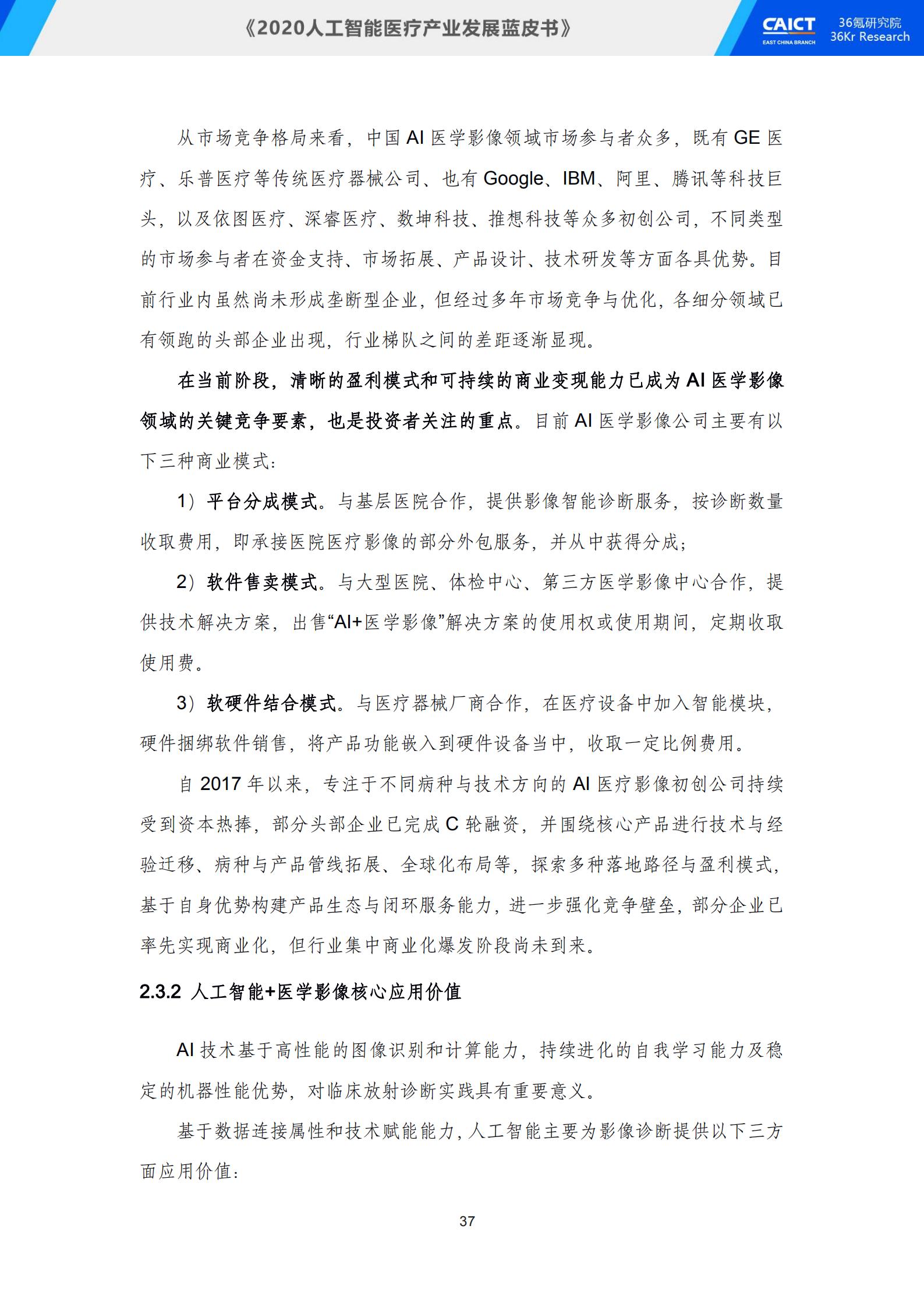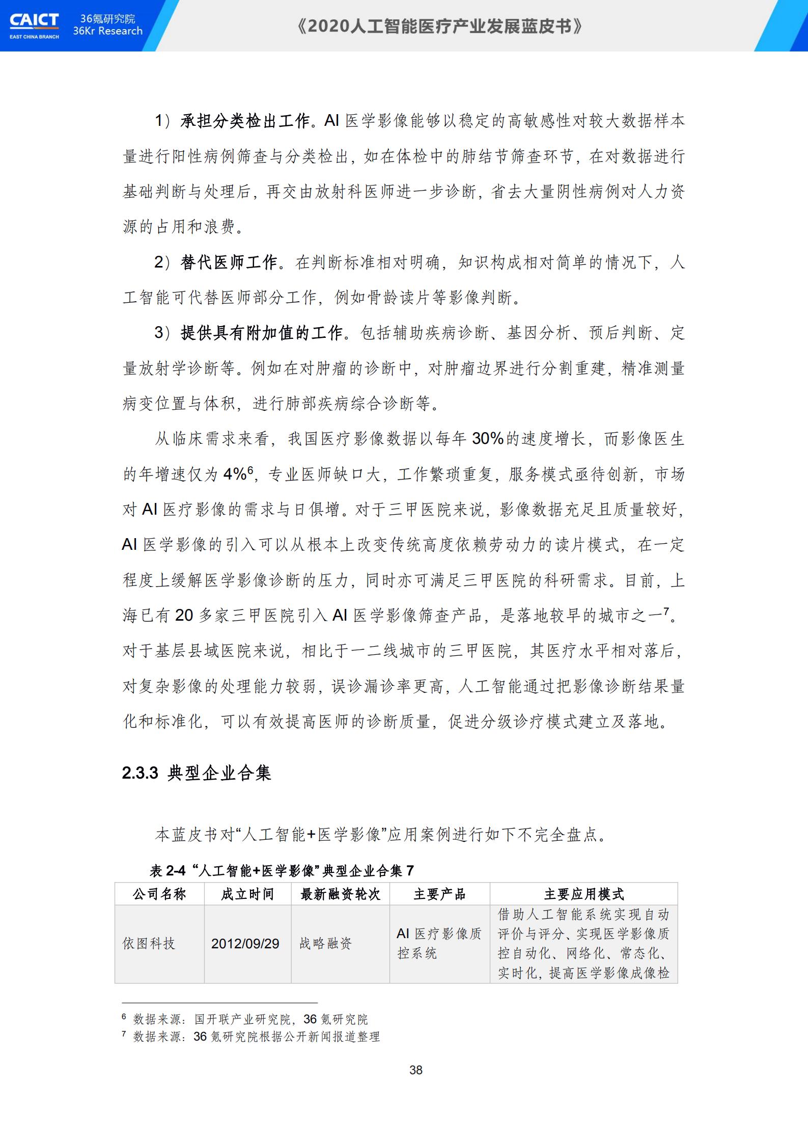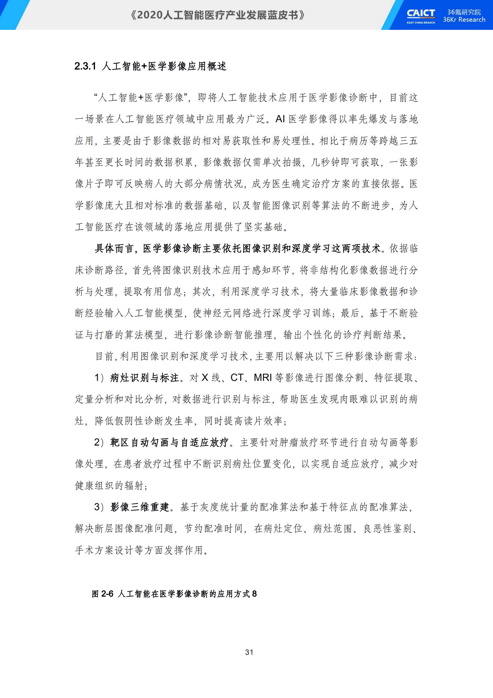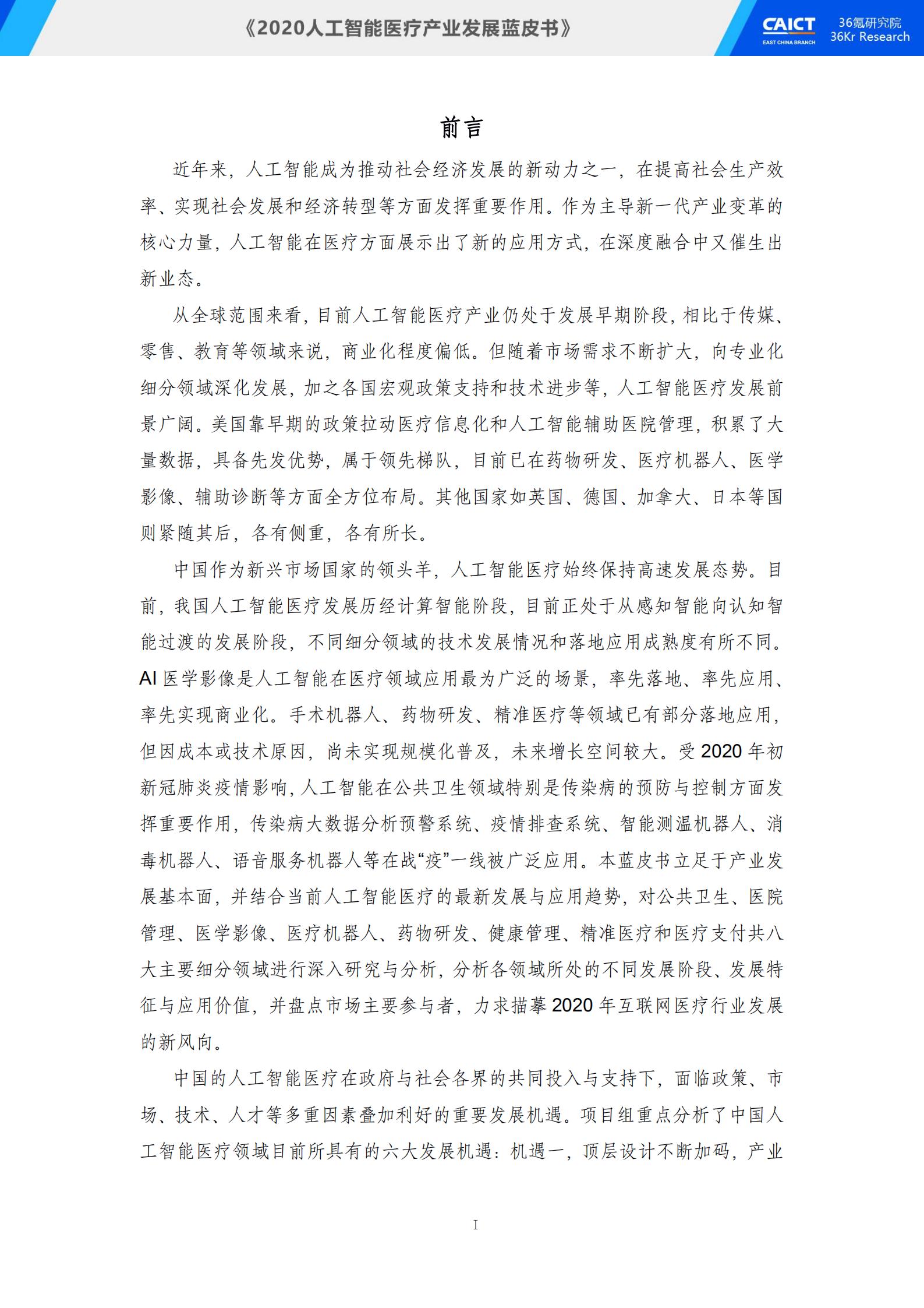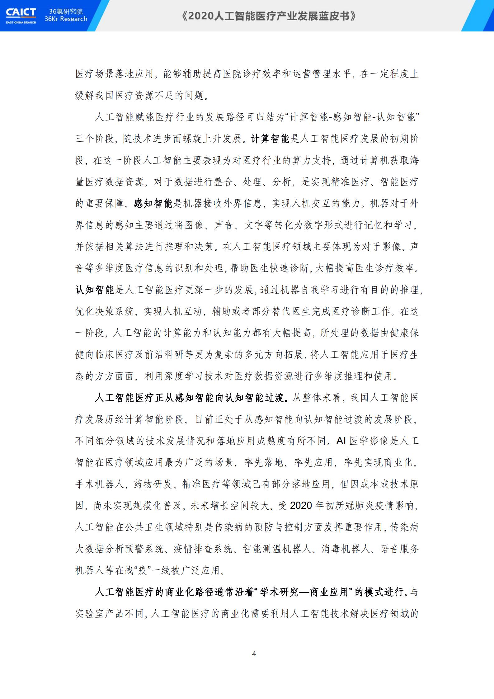 中国信通院联合36氪研究院重磅发布《2020人工智能医疗产业发展蓝皮书》
