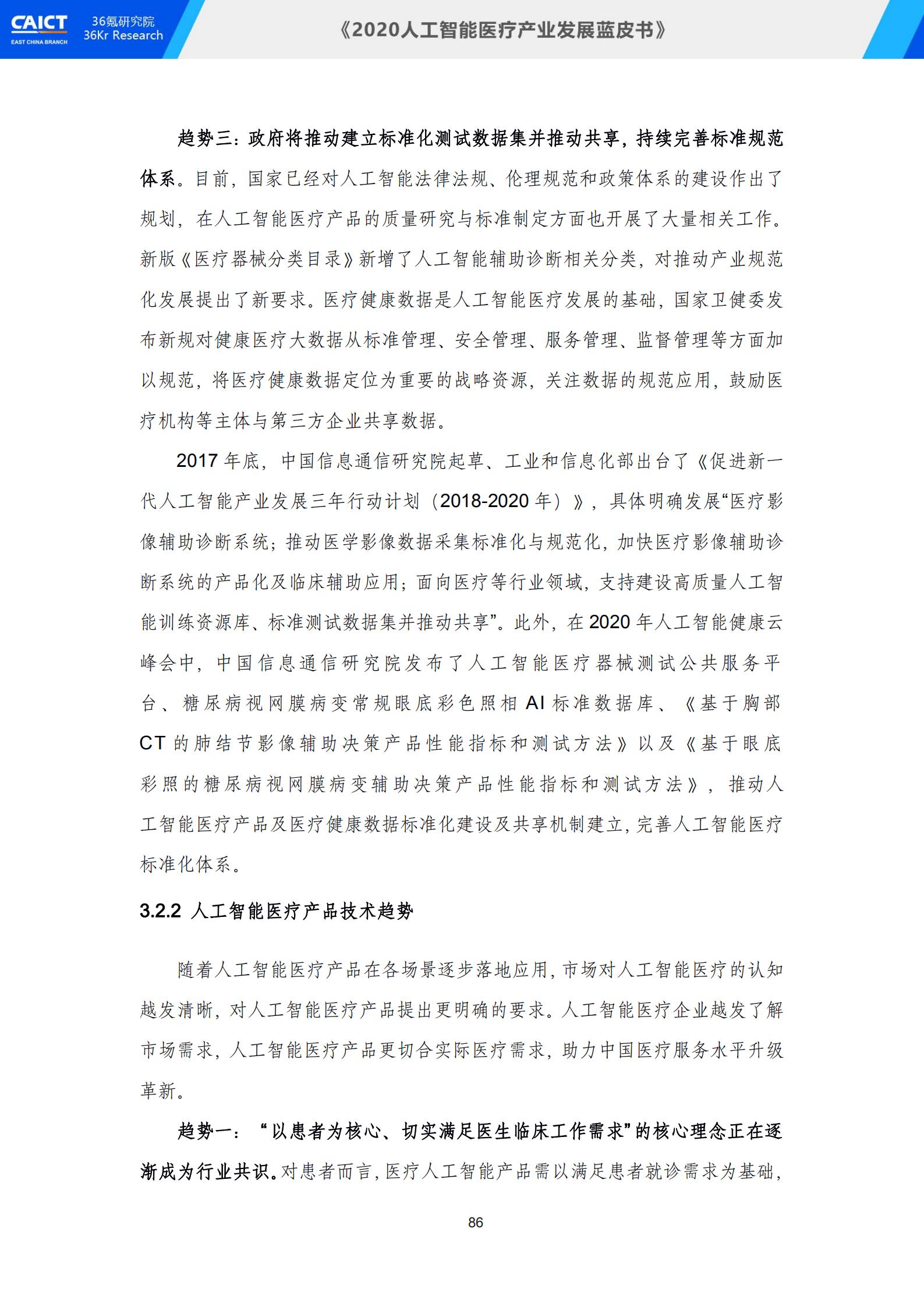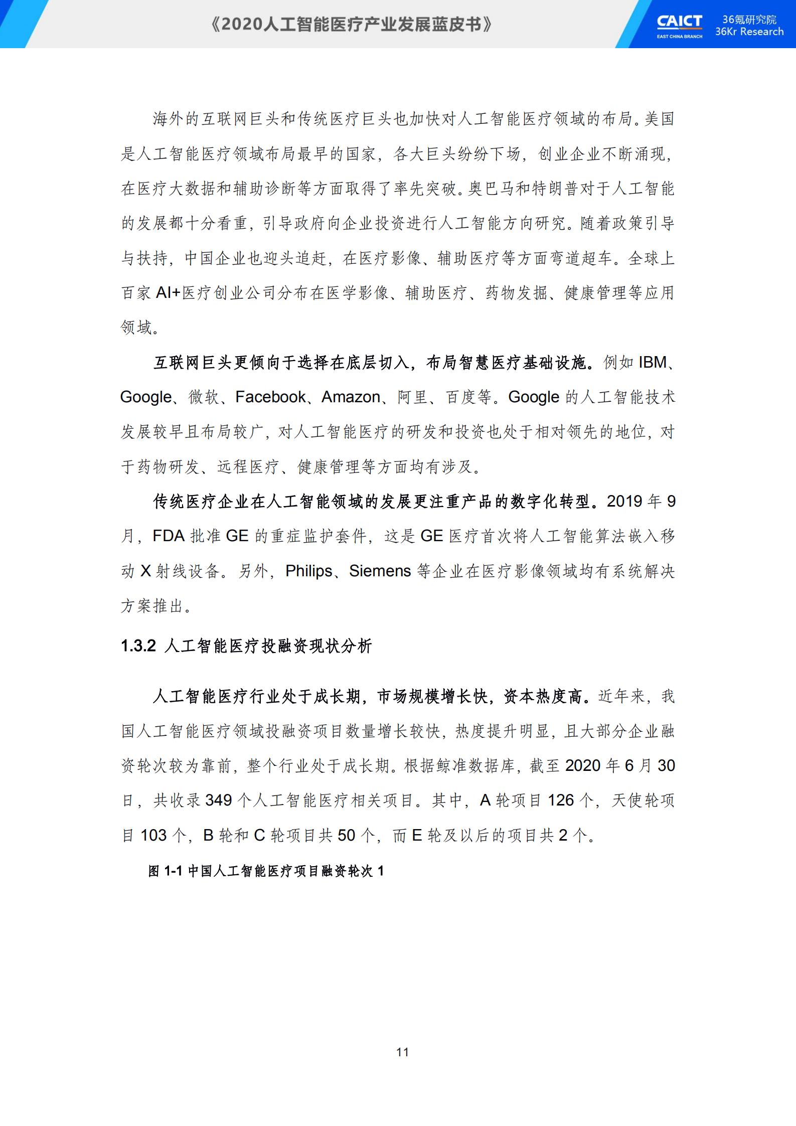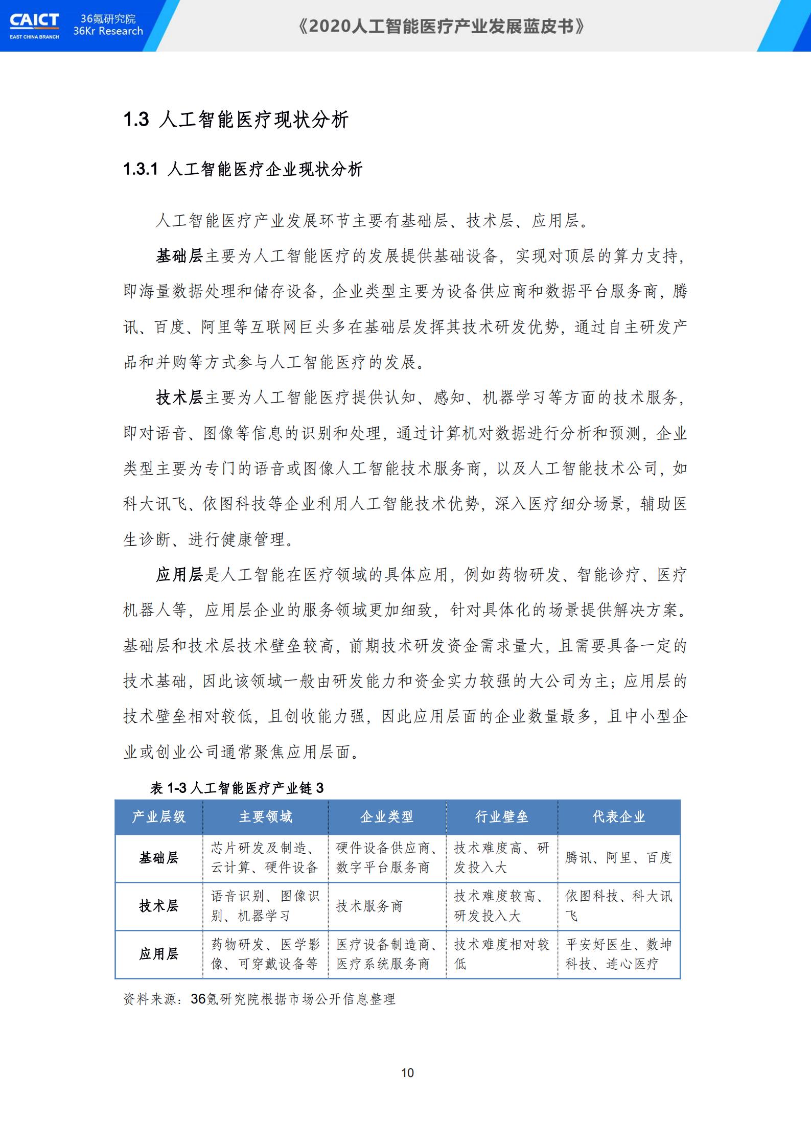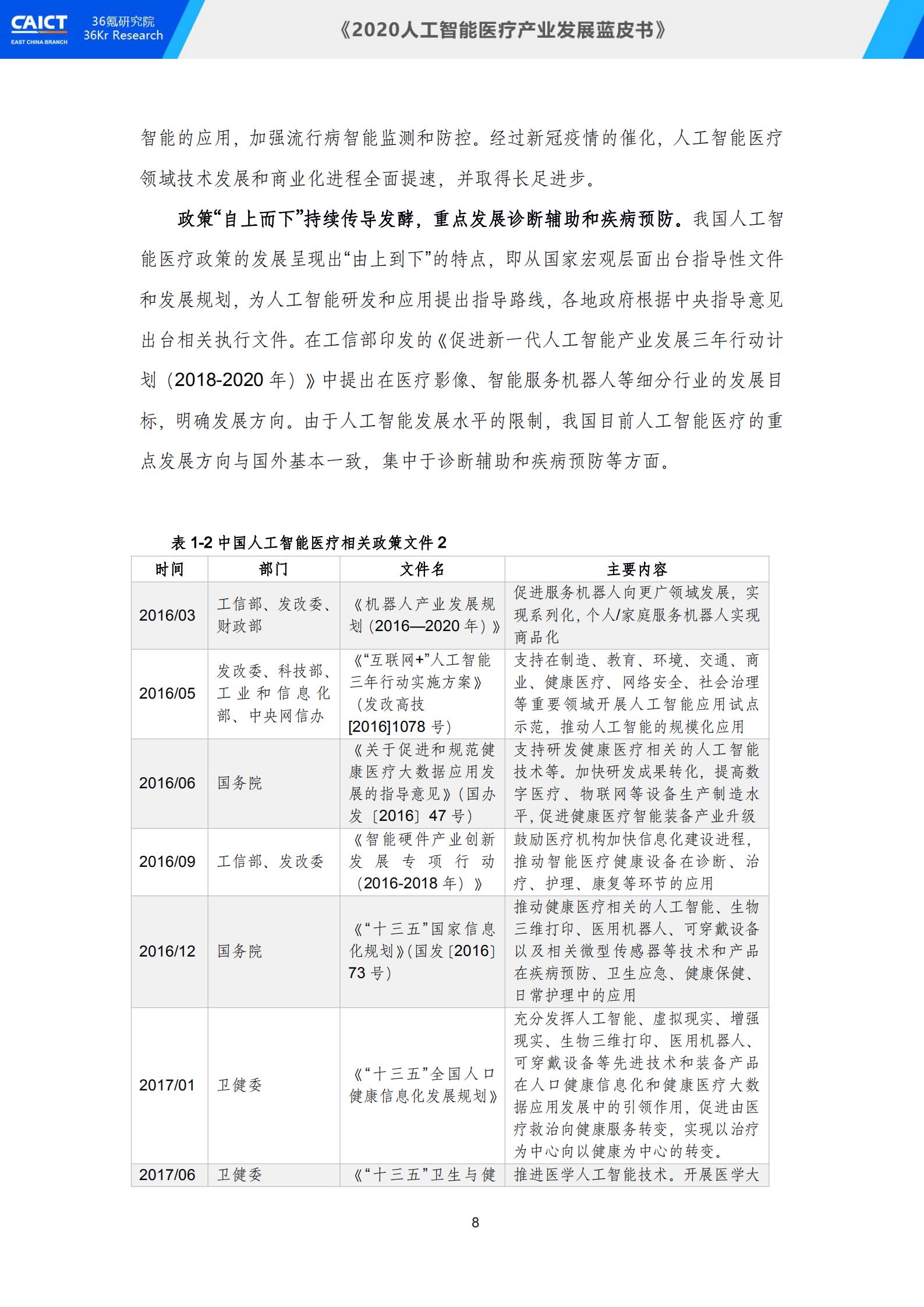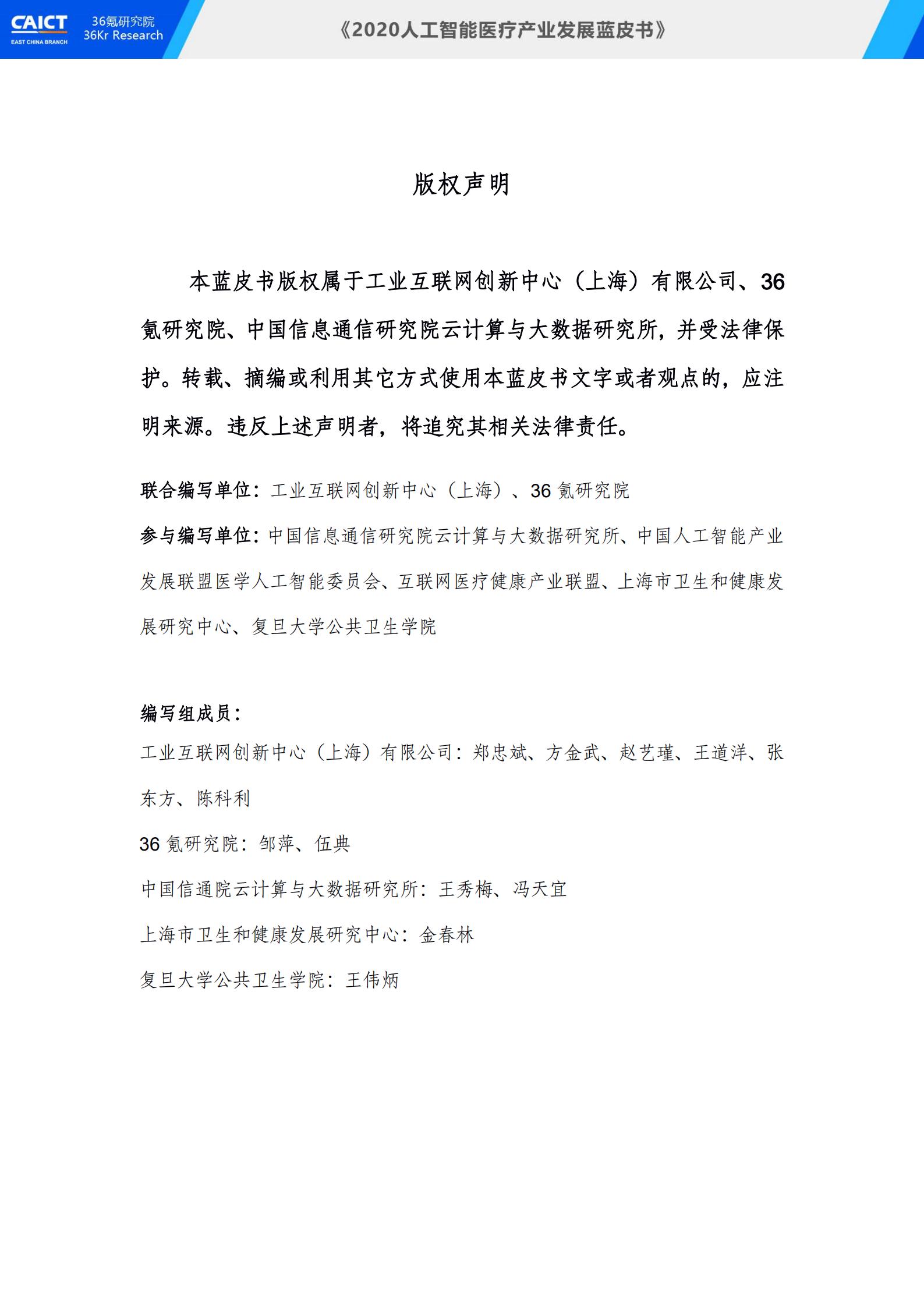 中国信通院联合36氪研究院重磅发布《2020人工智能医疗产业发展蓝皮书》