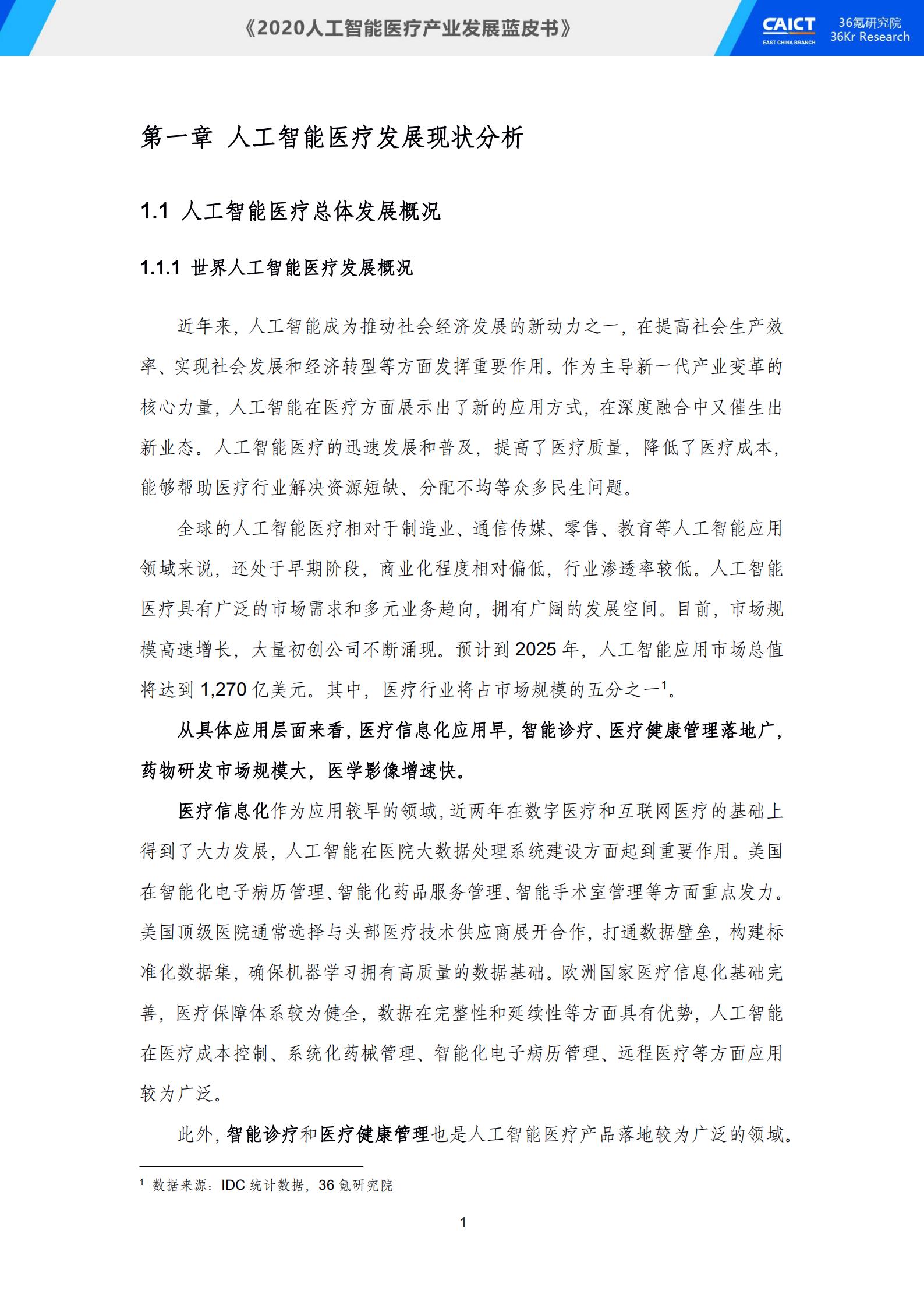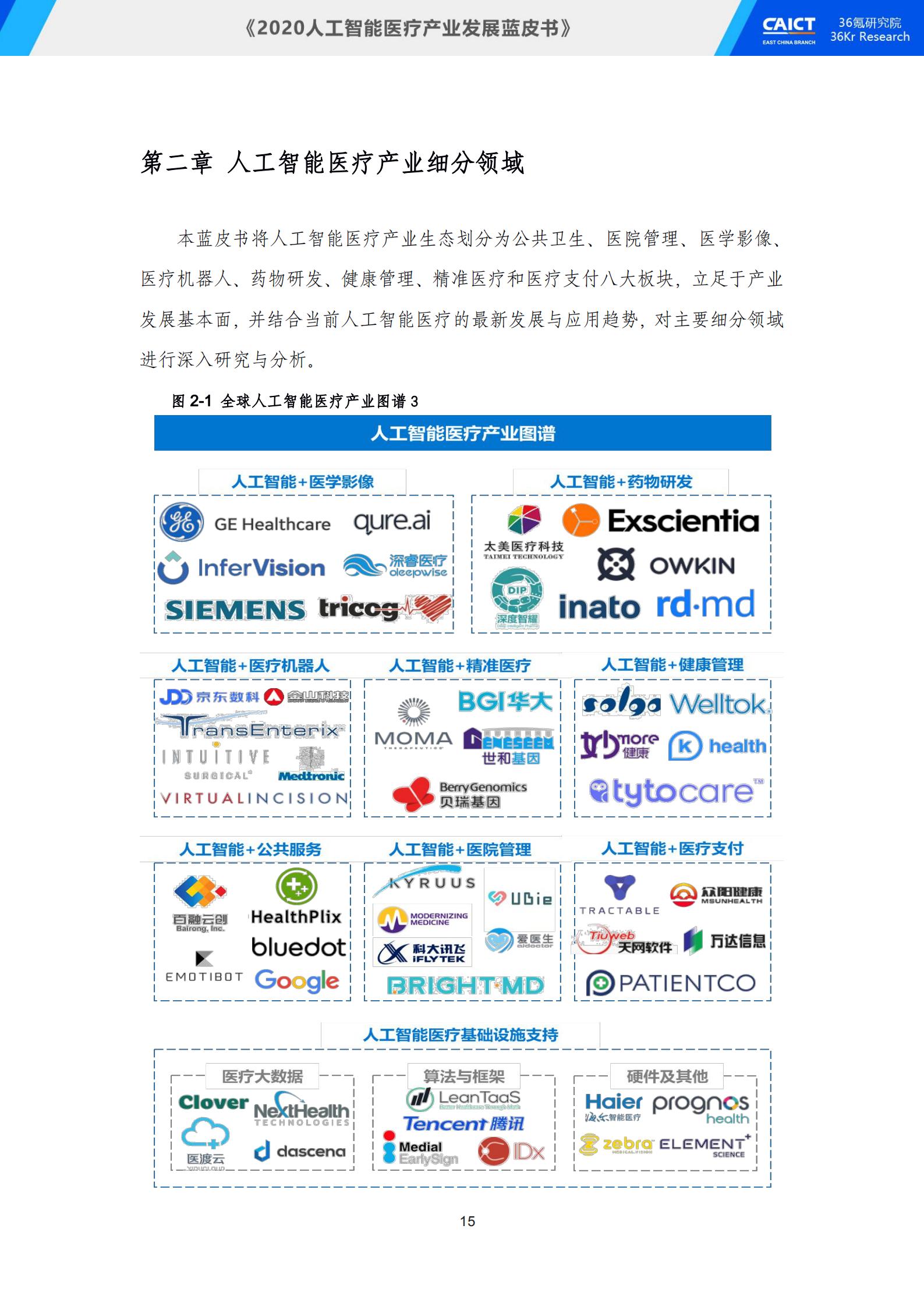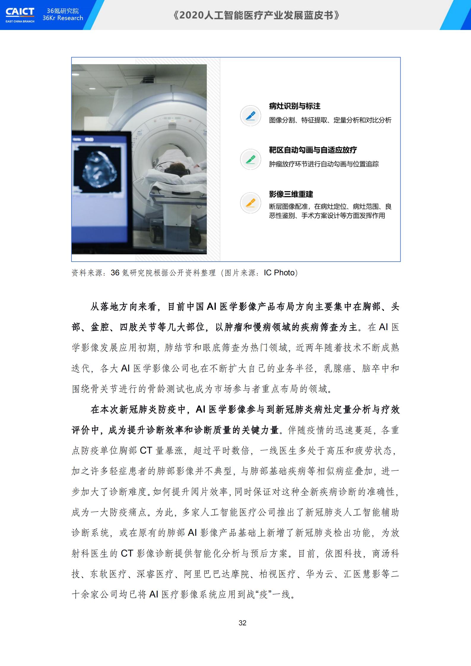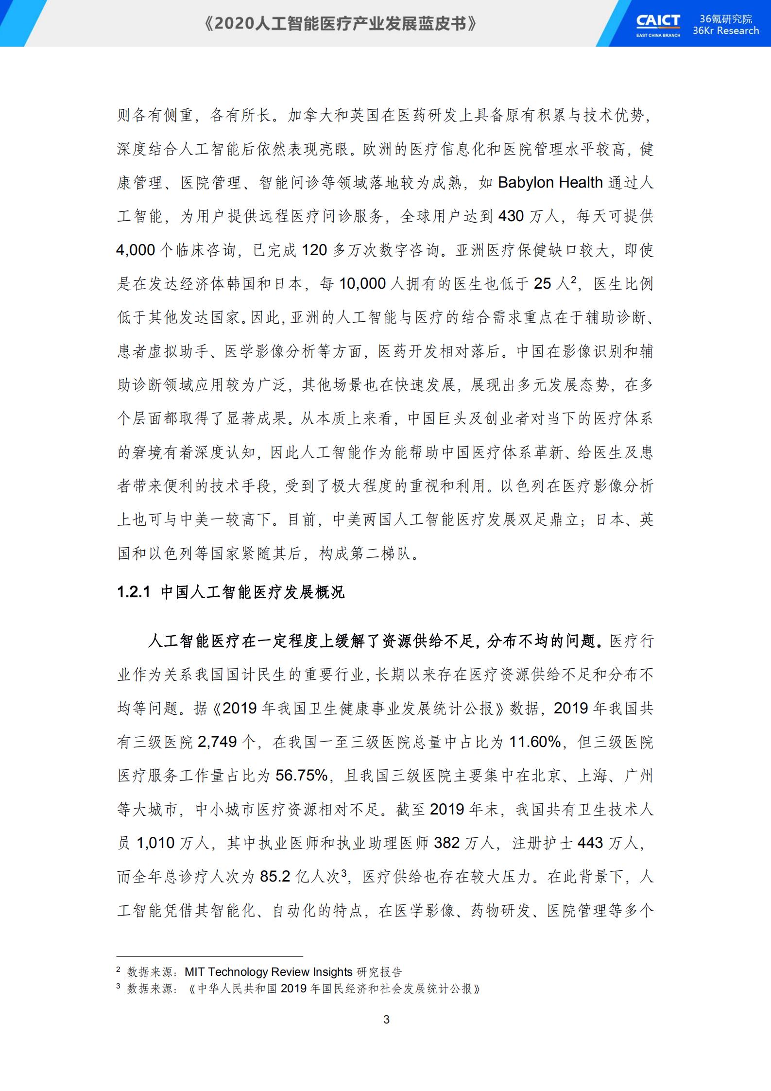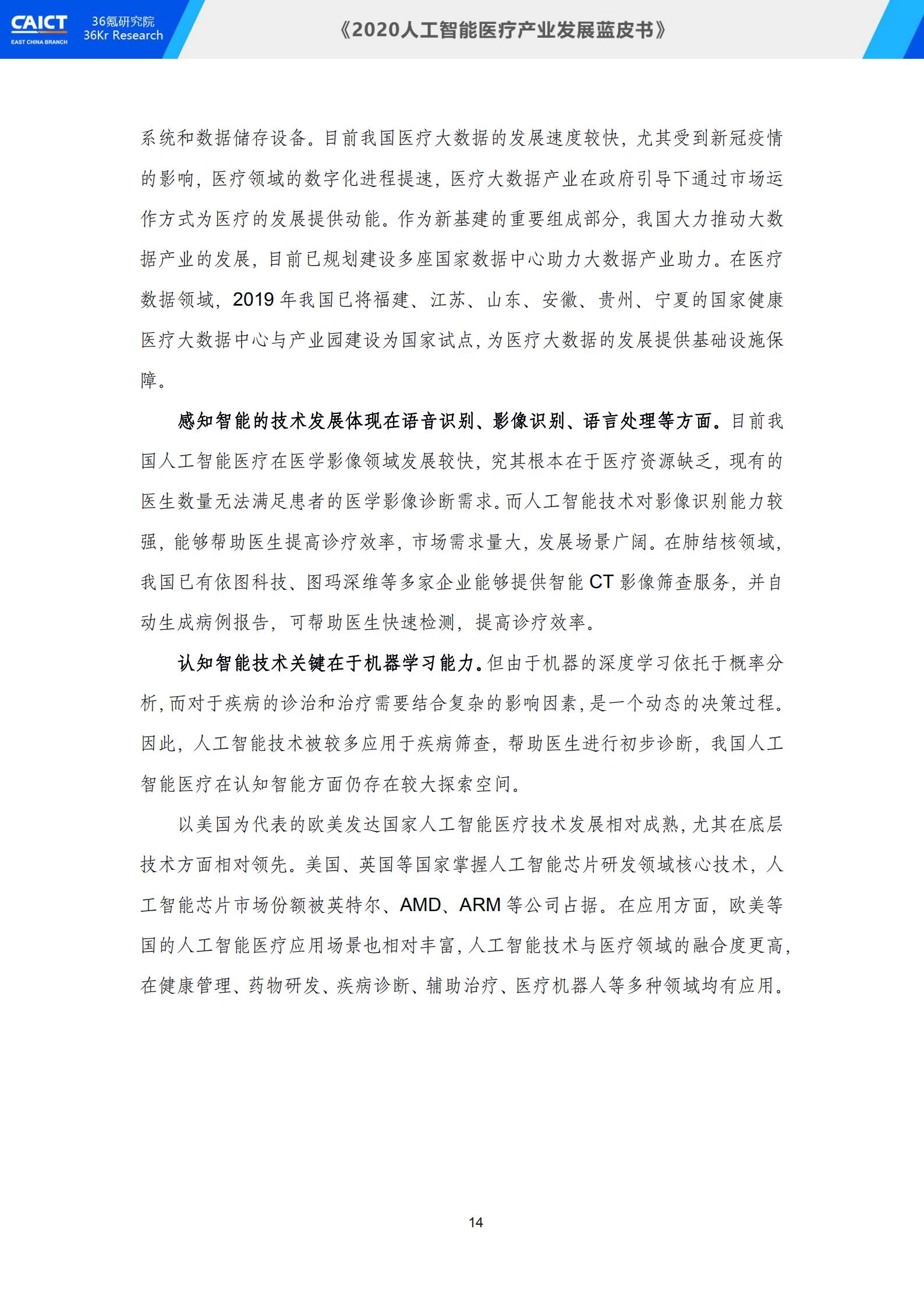 中国信通院联合36氪研究院重磅发布《2020人工智能医疗产业发展蓝皮书》