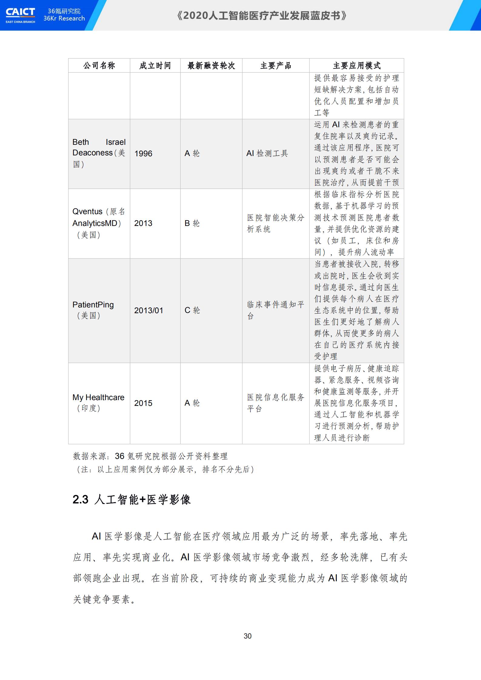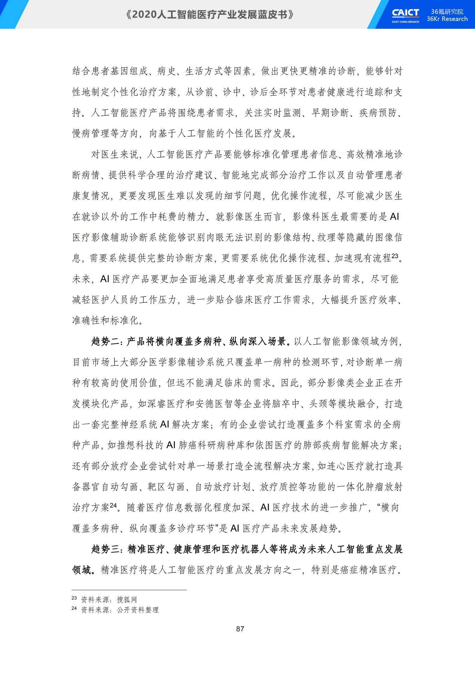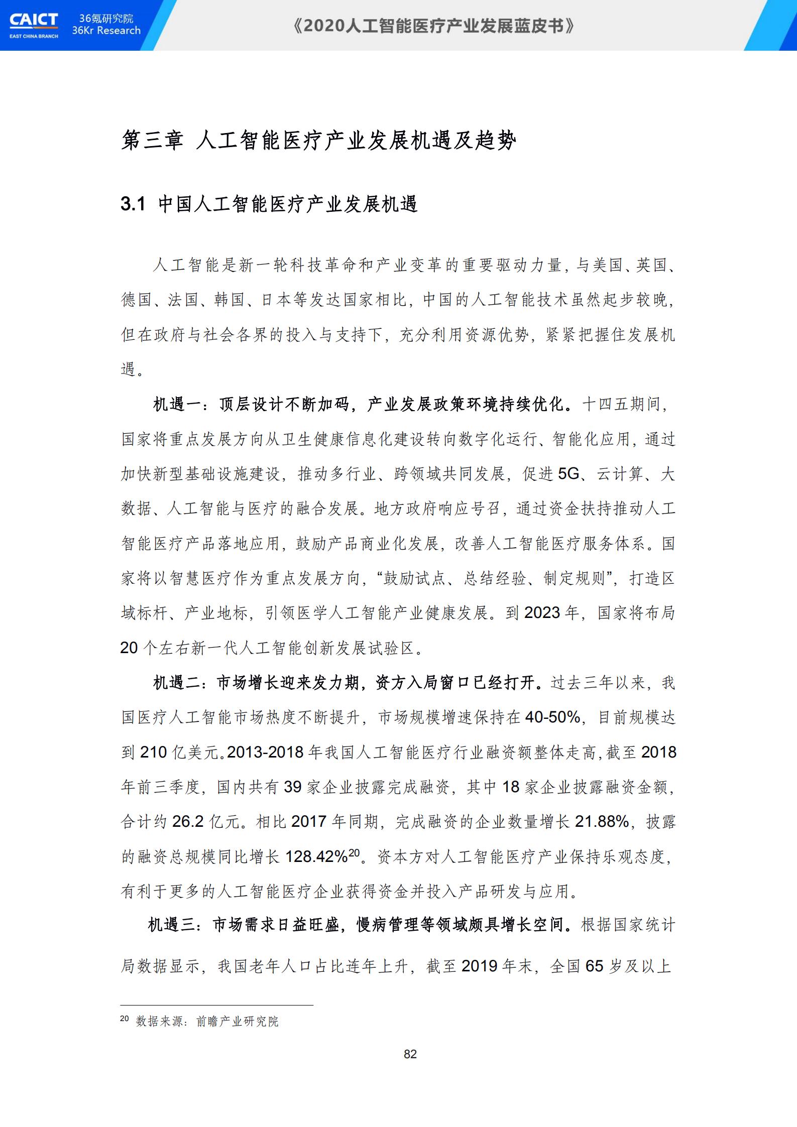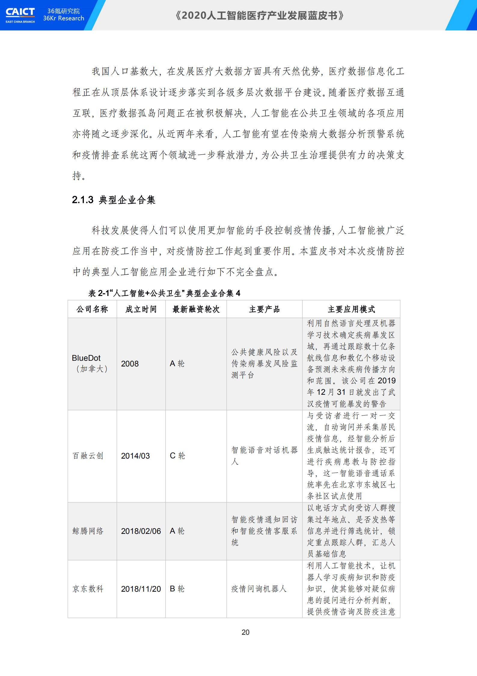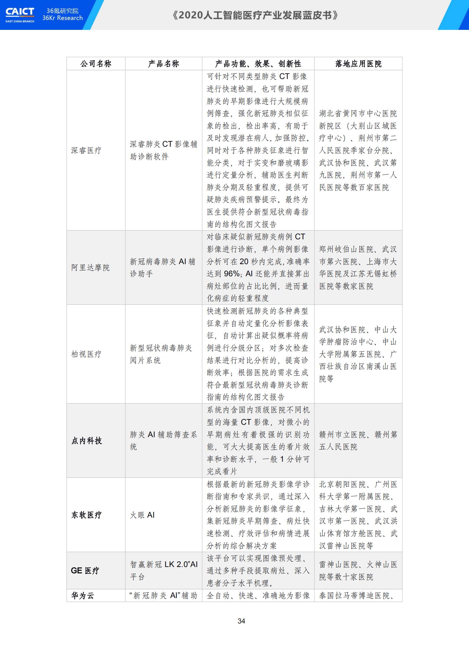 中国信通院联合36氪研究院重磅发布《2020人工智能医疗产业发展蓝皮书》
