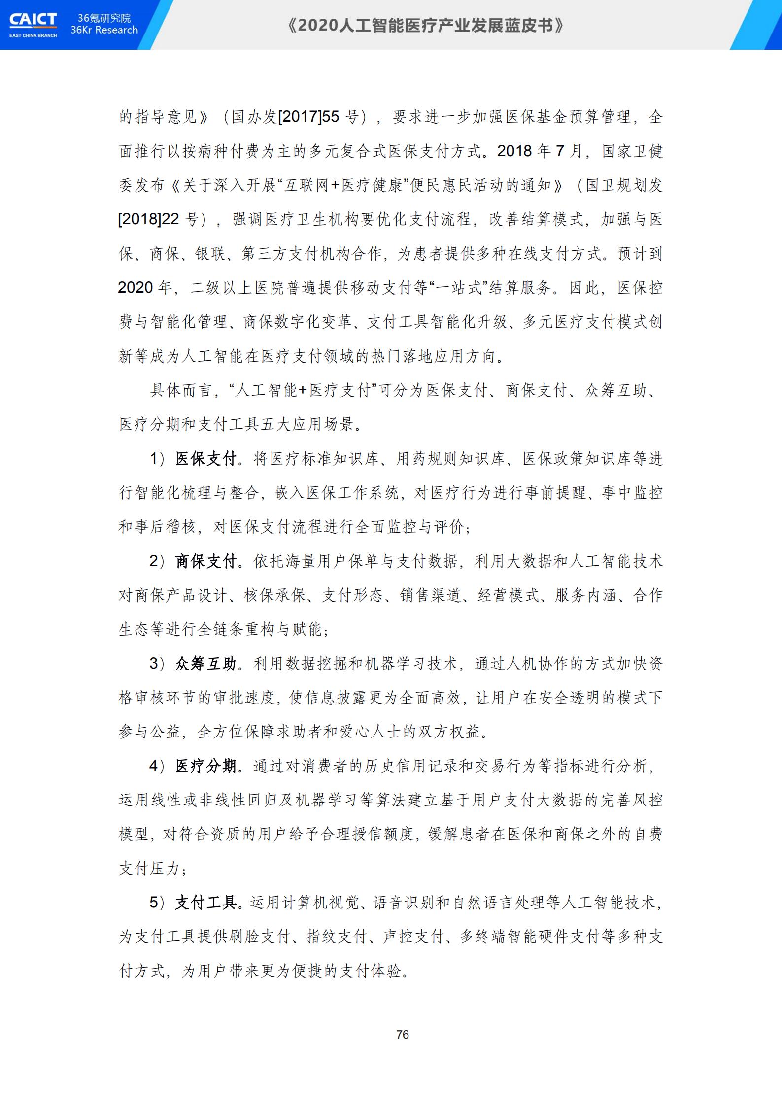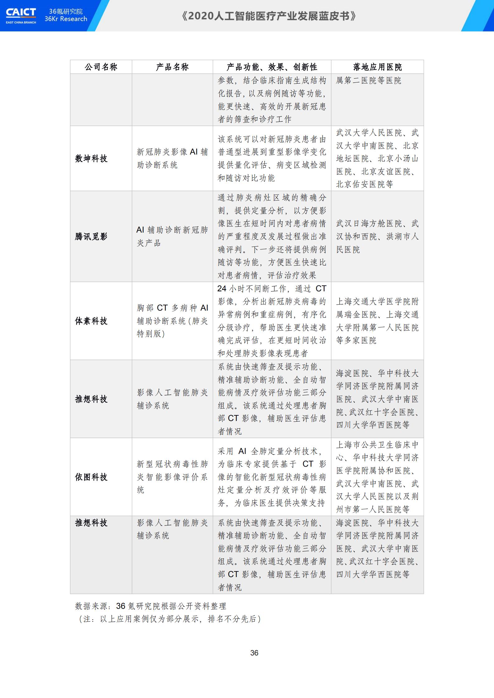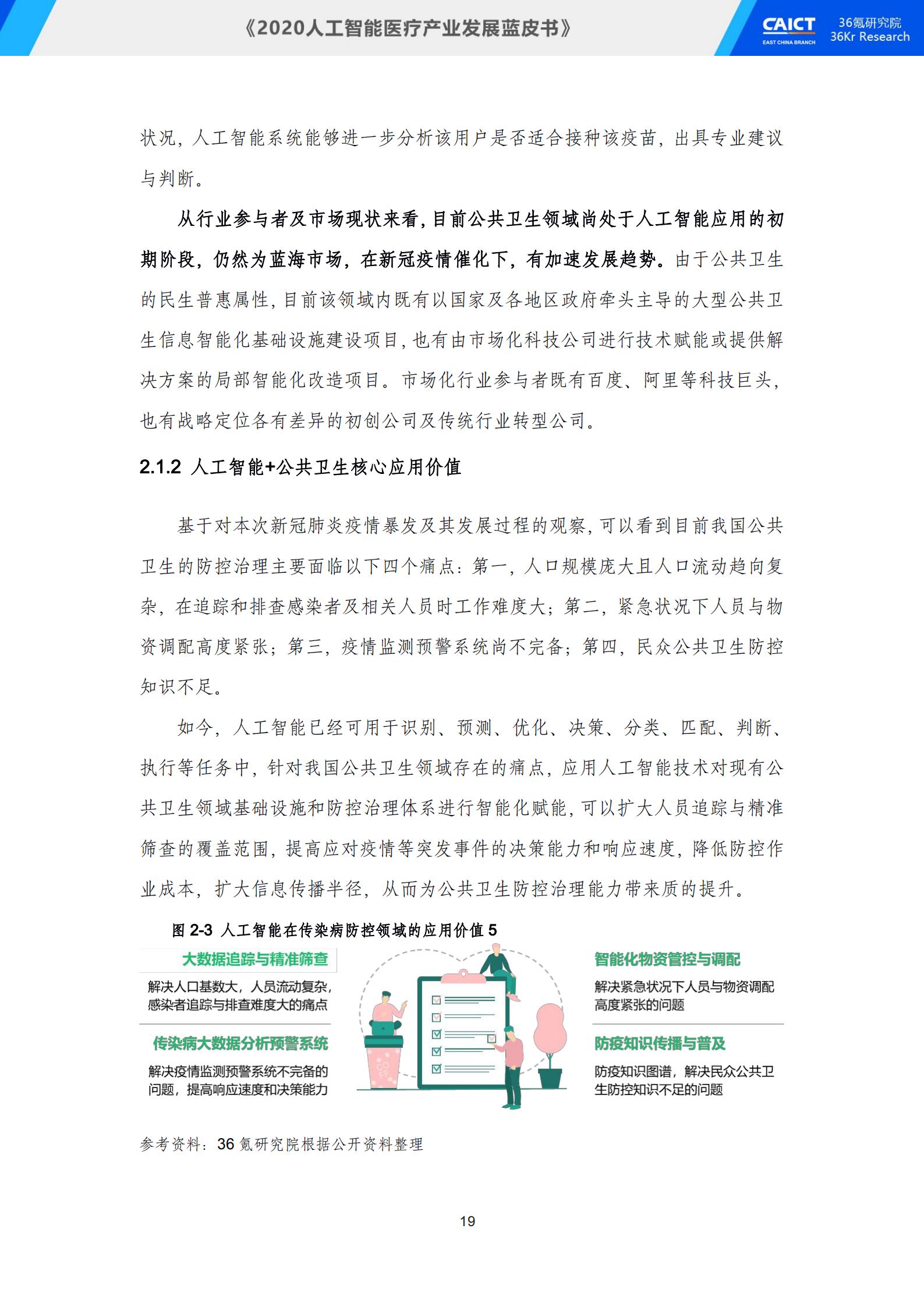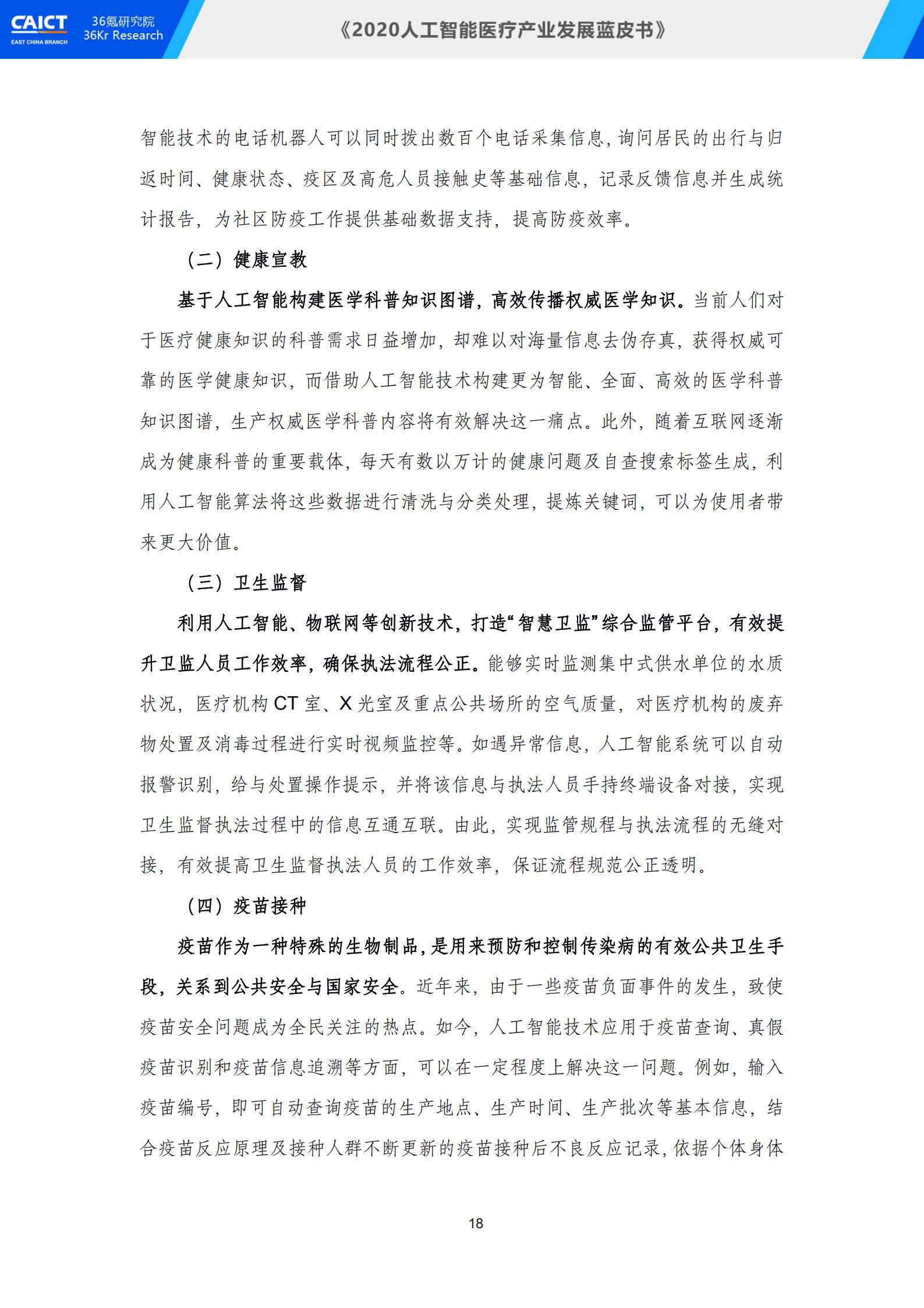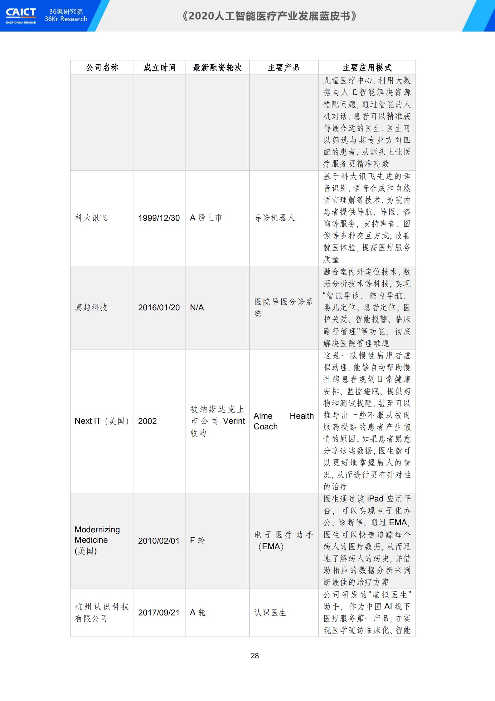 中国信通院联合36氪研究院重磅发布《2020人工智能医疗产业发展蓝皮书》