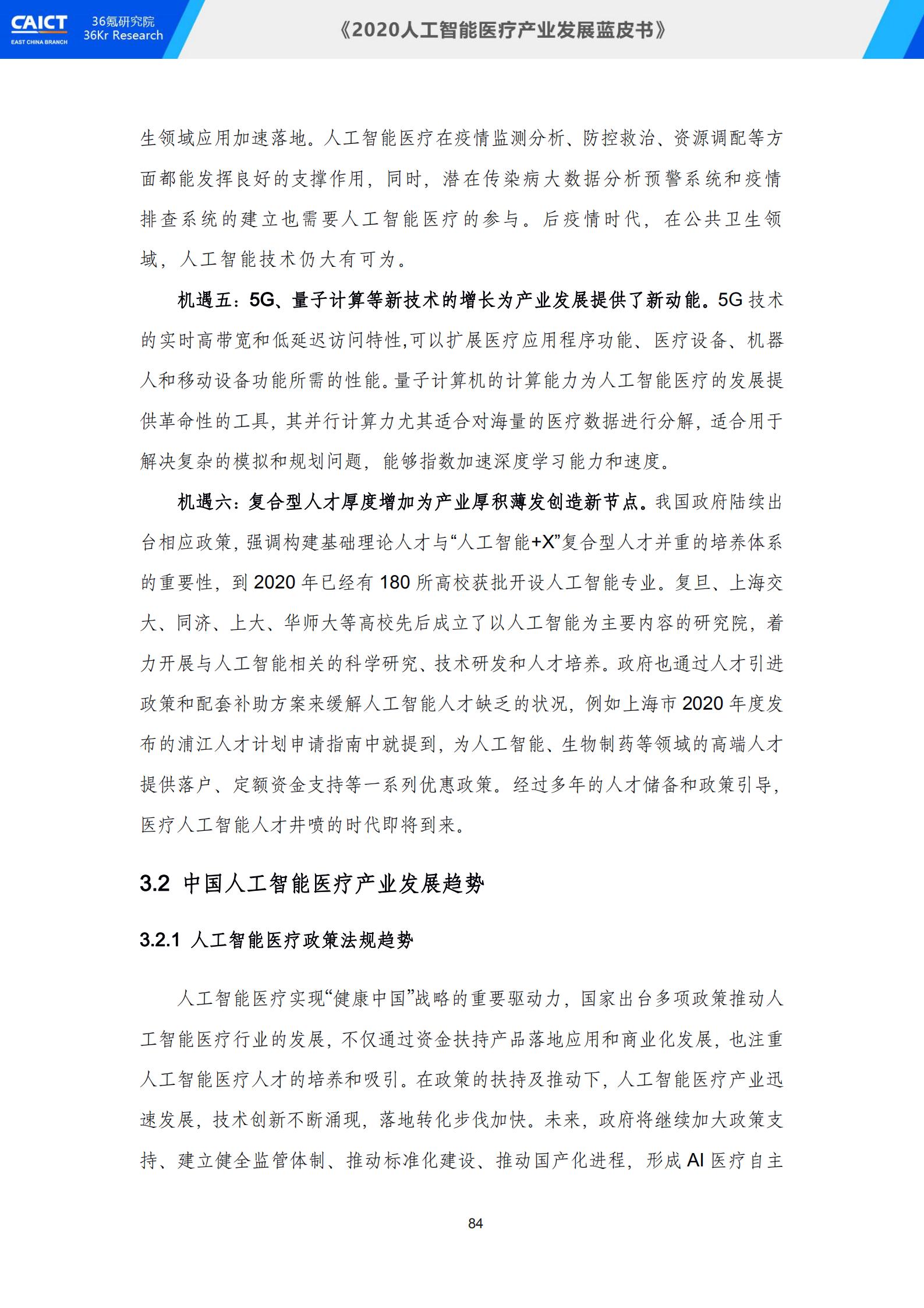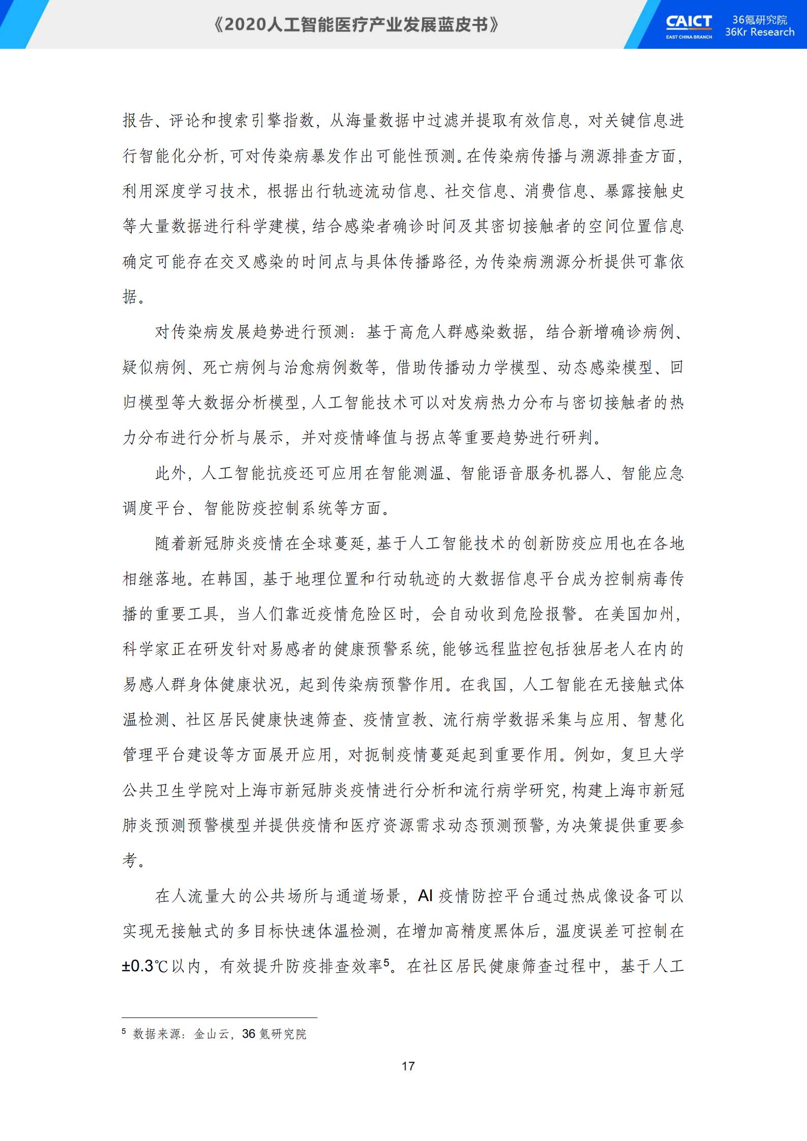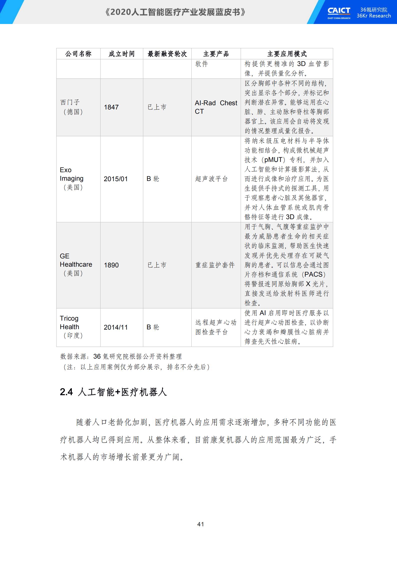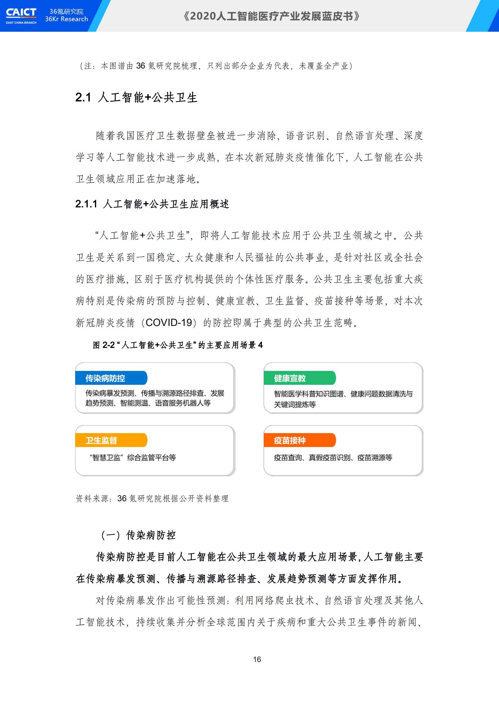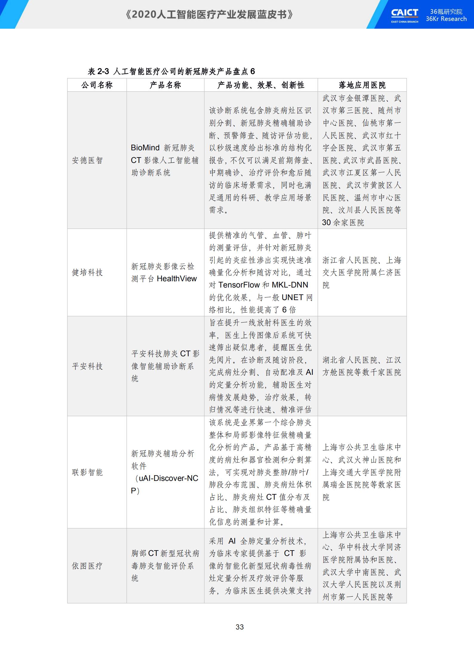 中国信通院联合36氪研究院重磅发布《2020人工智能医疗产业发展蓝皮书》