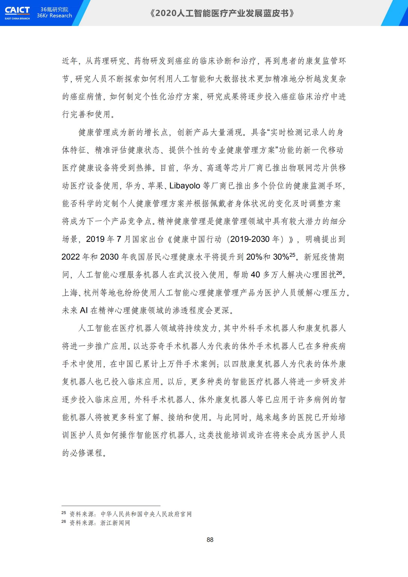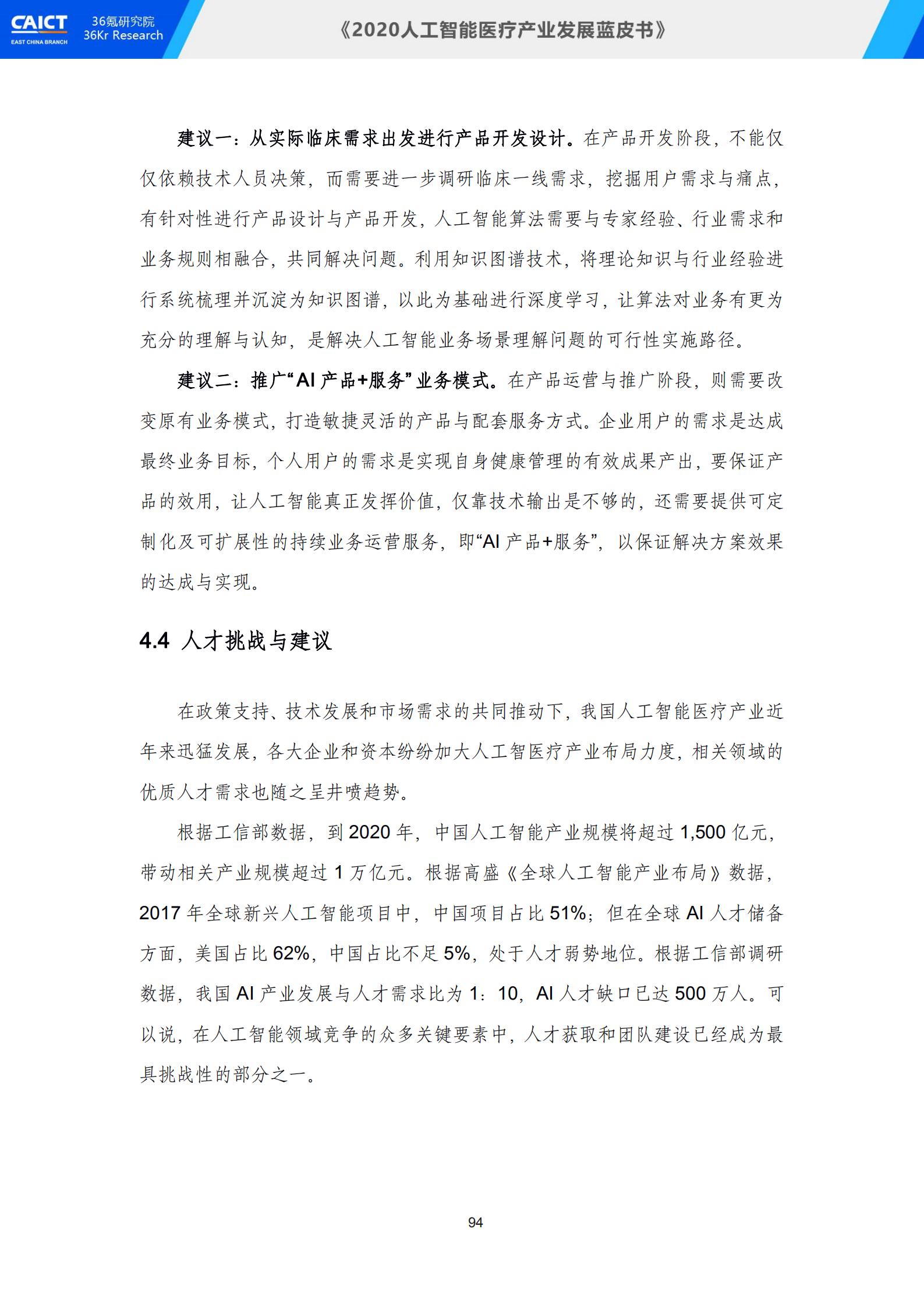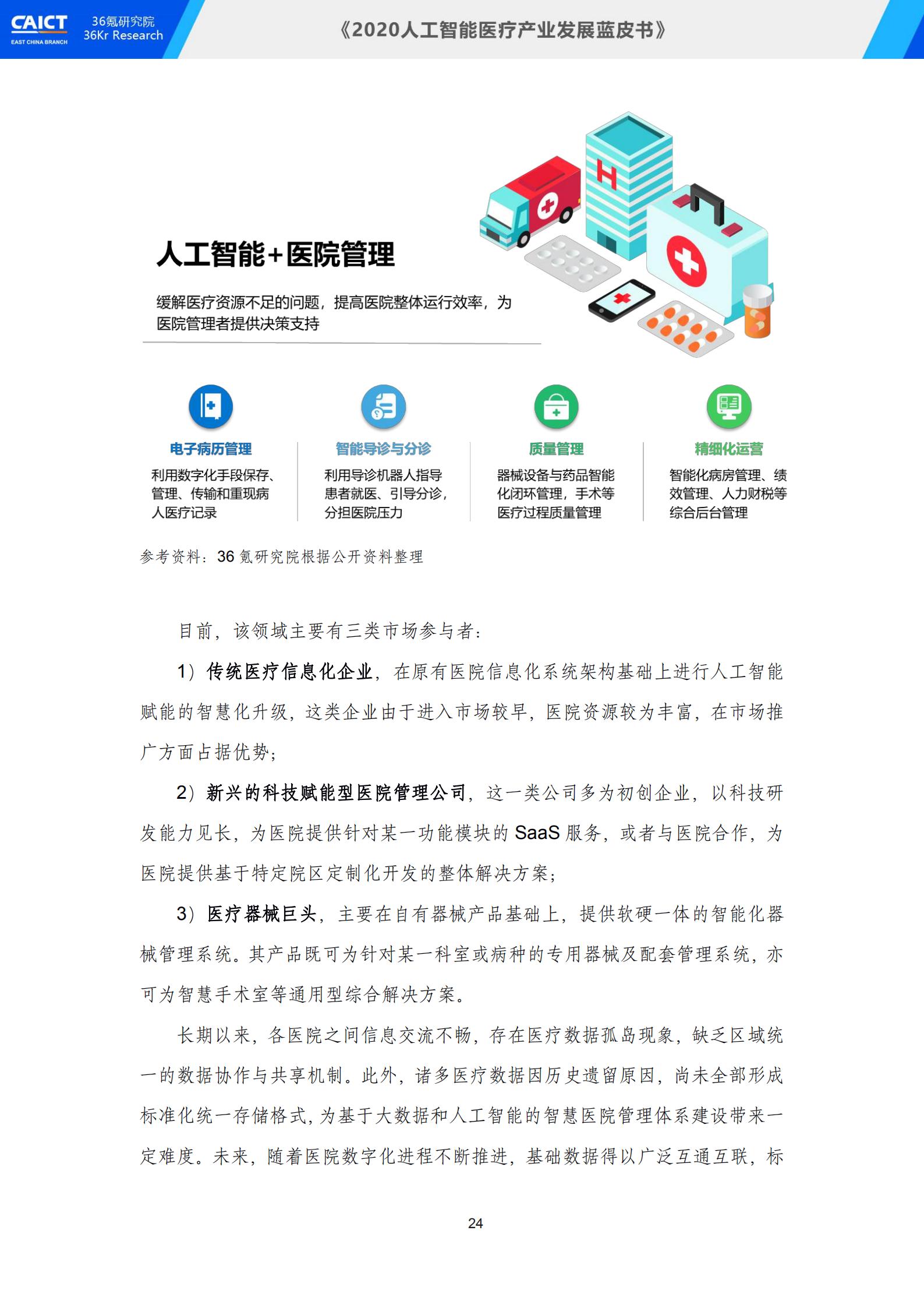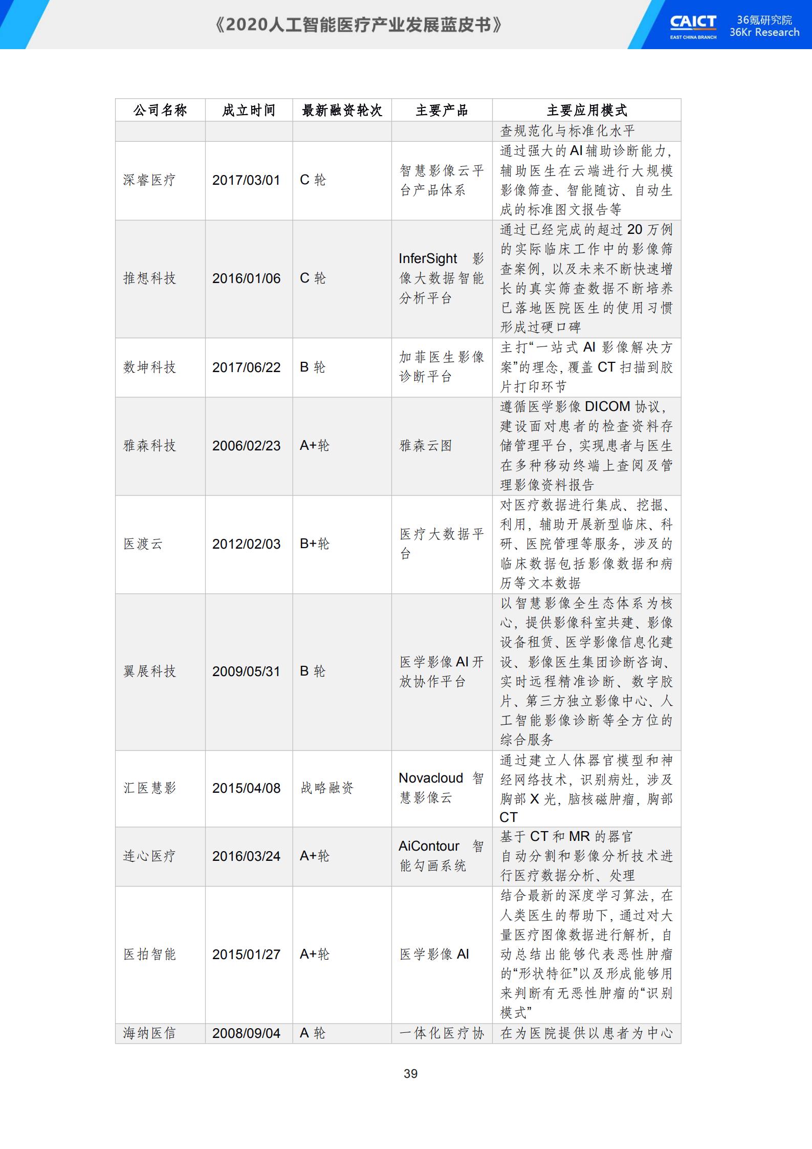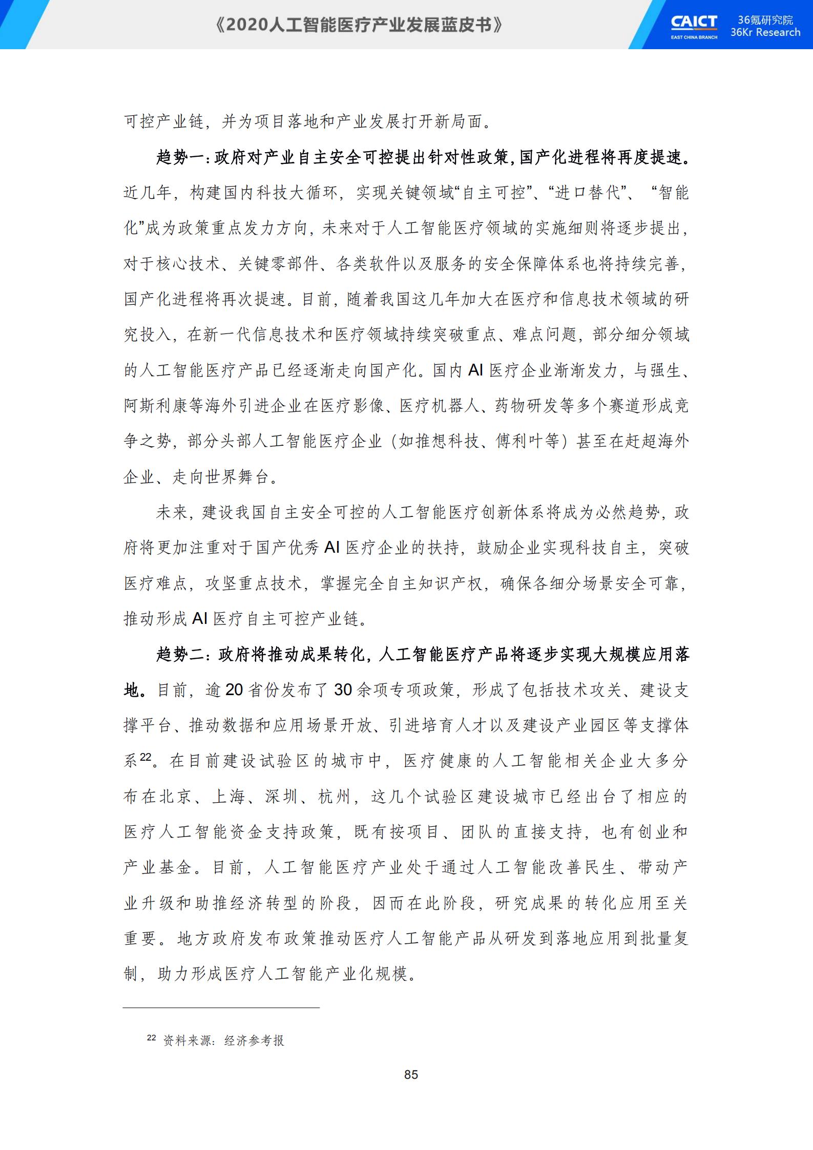 中国信通院联合36氪研究院重磅发布《2020人工智能医疗产业发展蓝皮书》