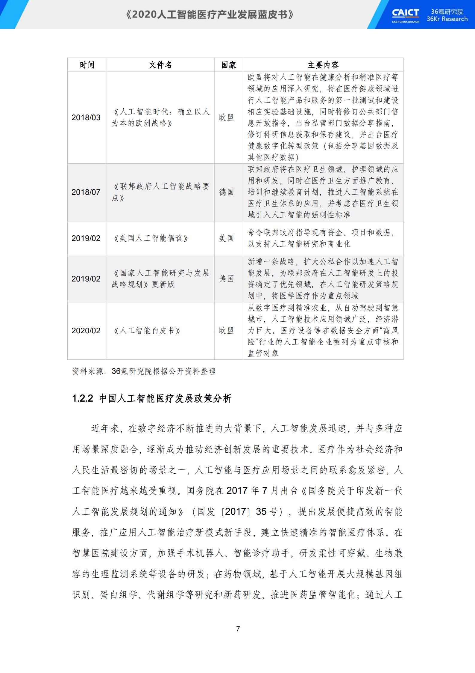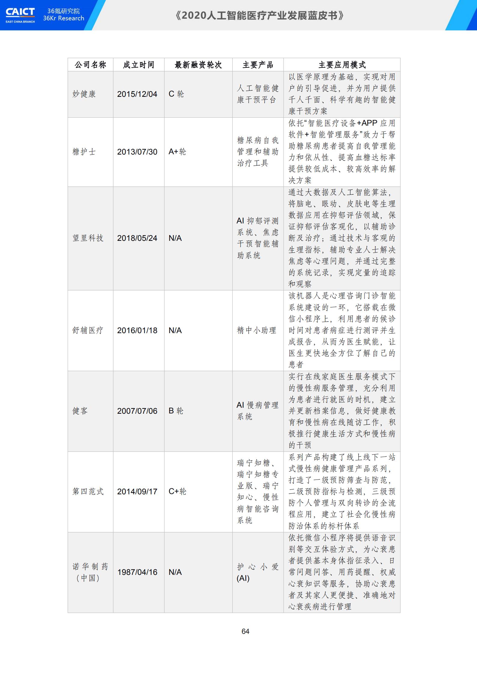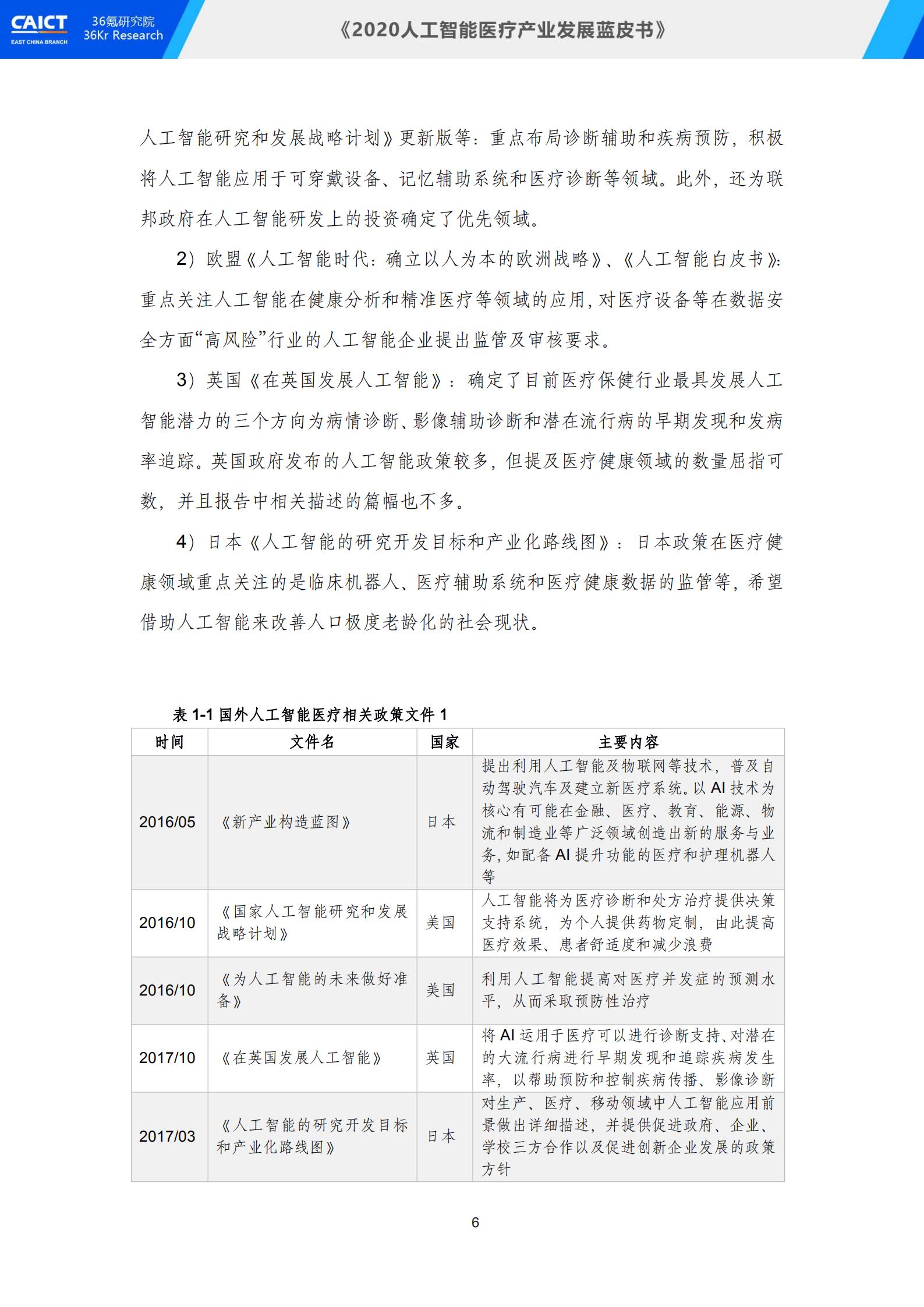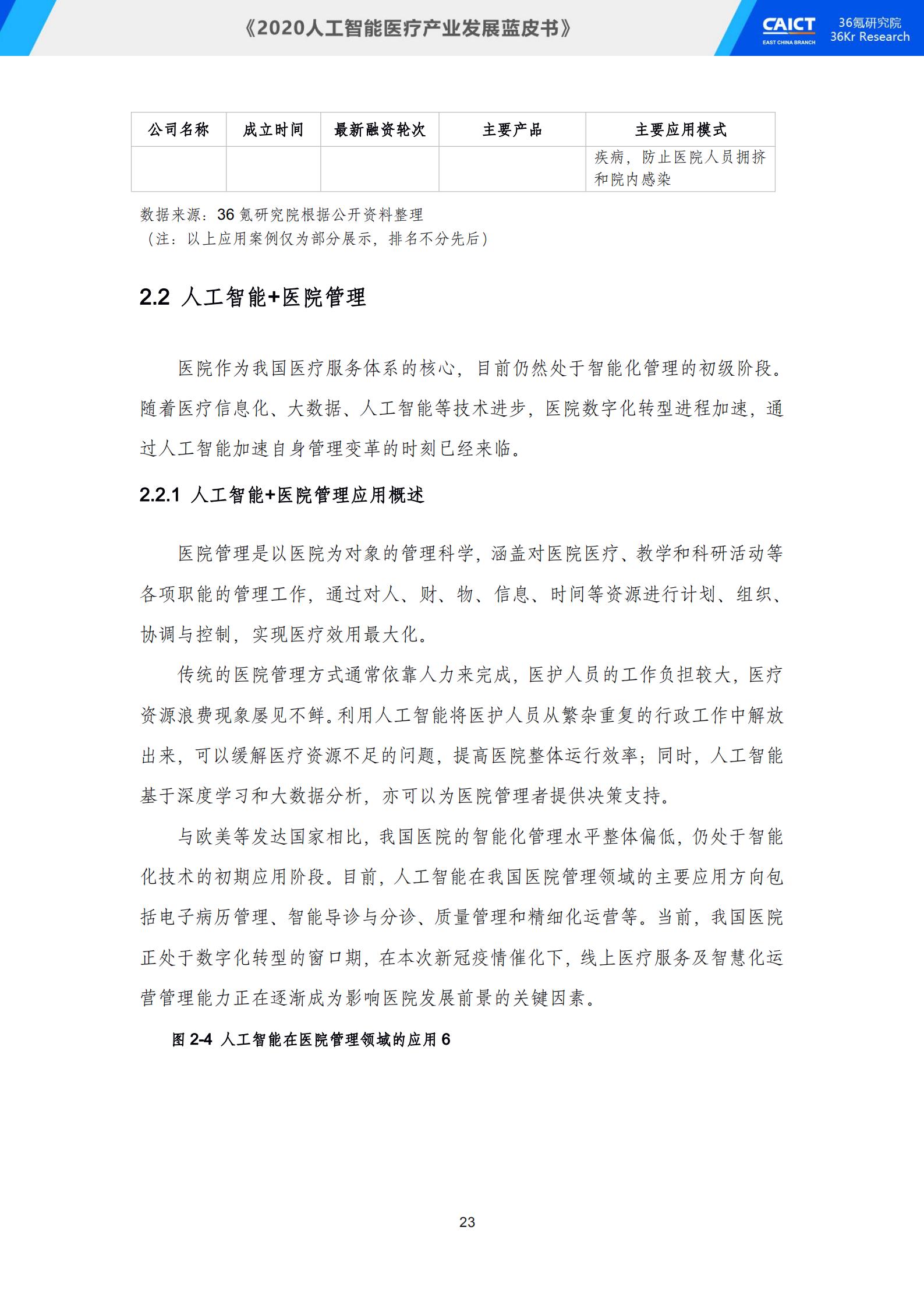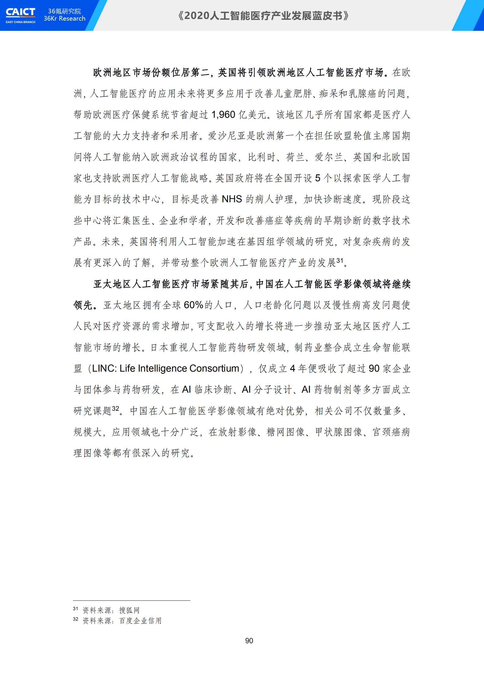 中国信通院联合36氪研究院重磅发布《2020人工智能医疗产业发展蓝皮书》