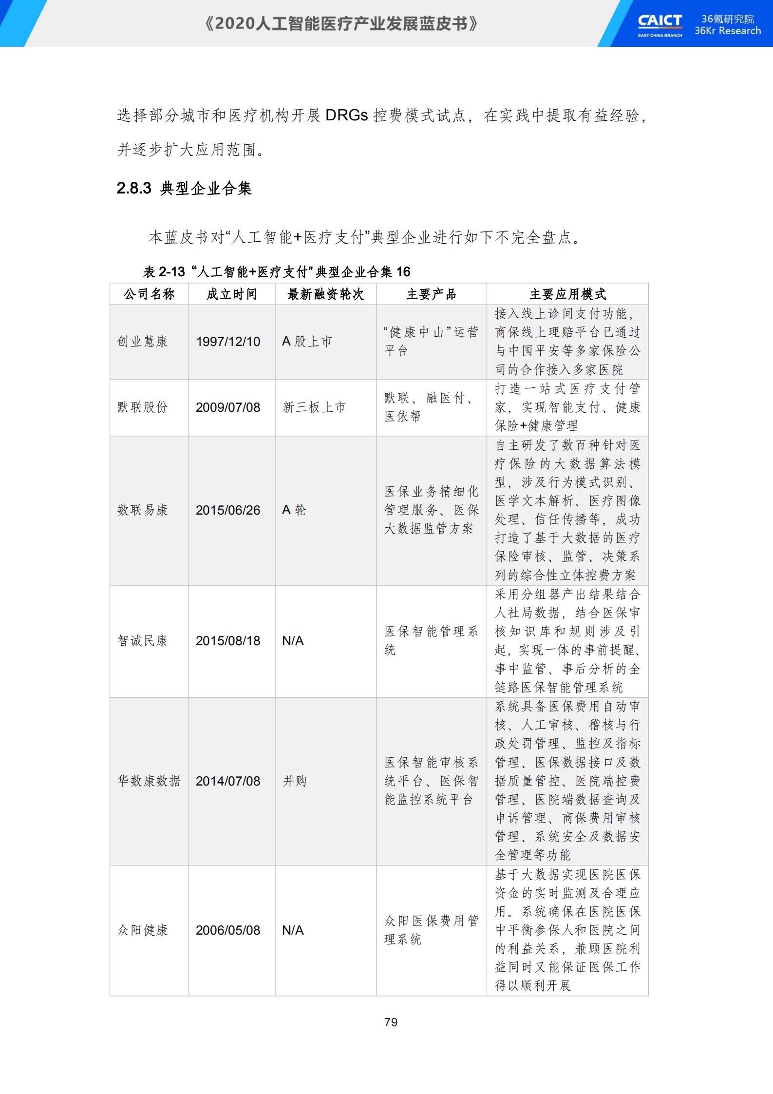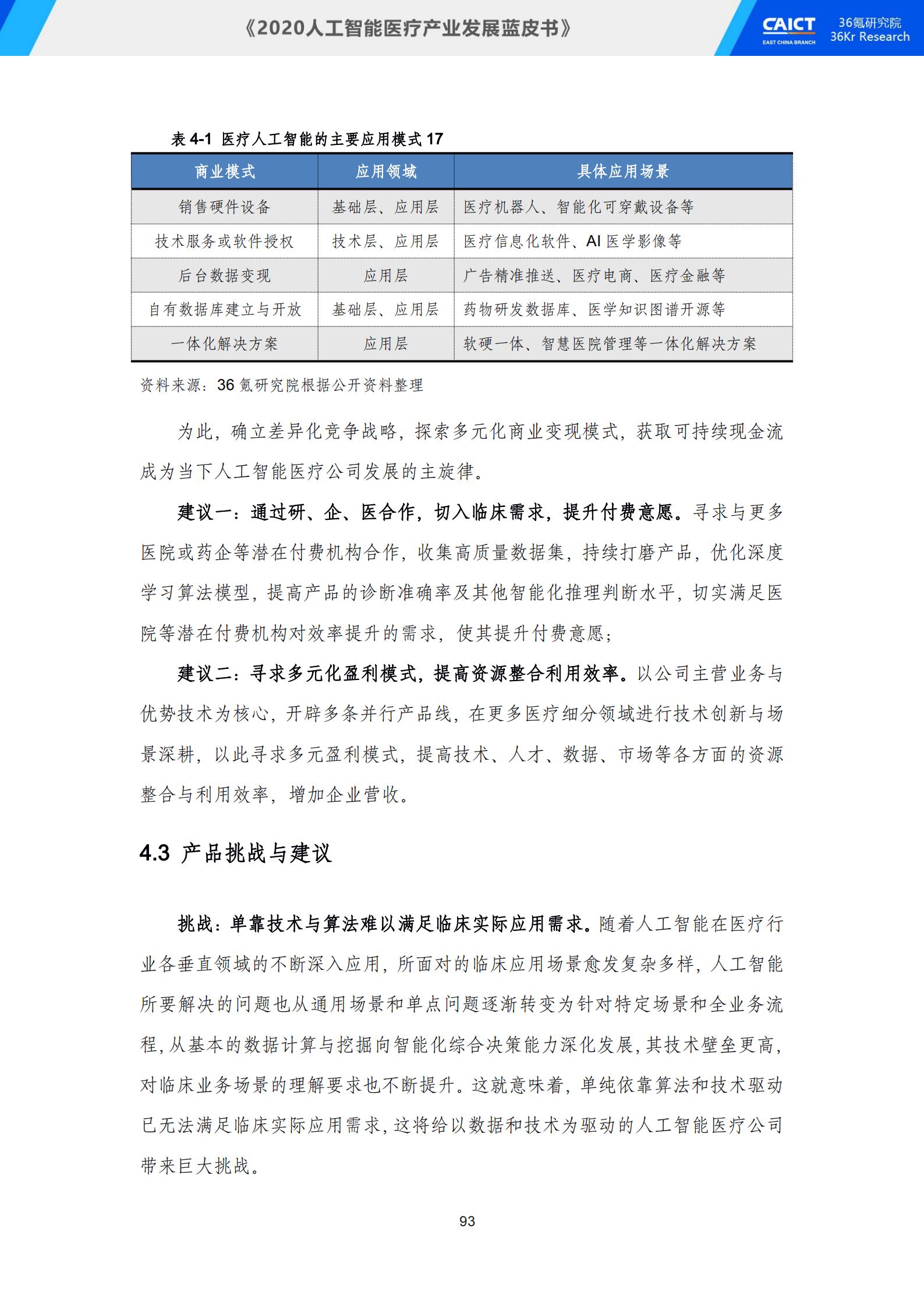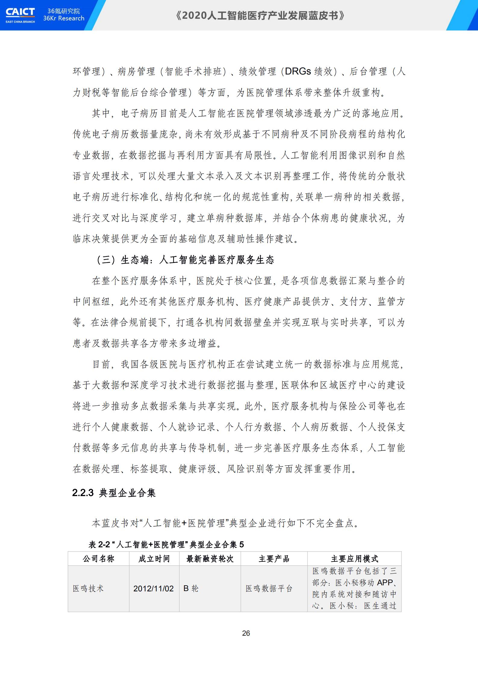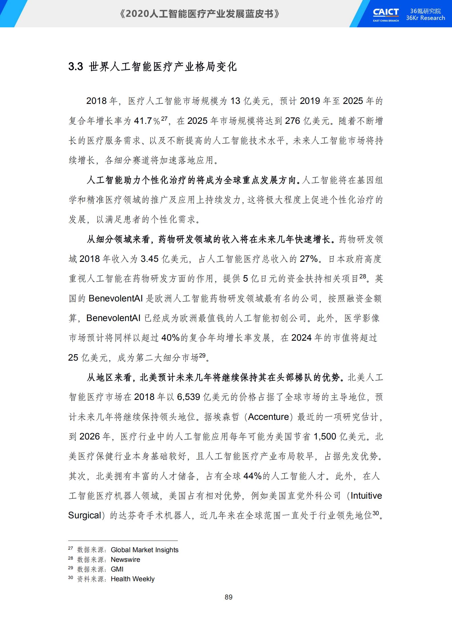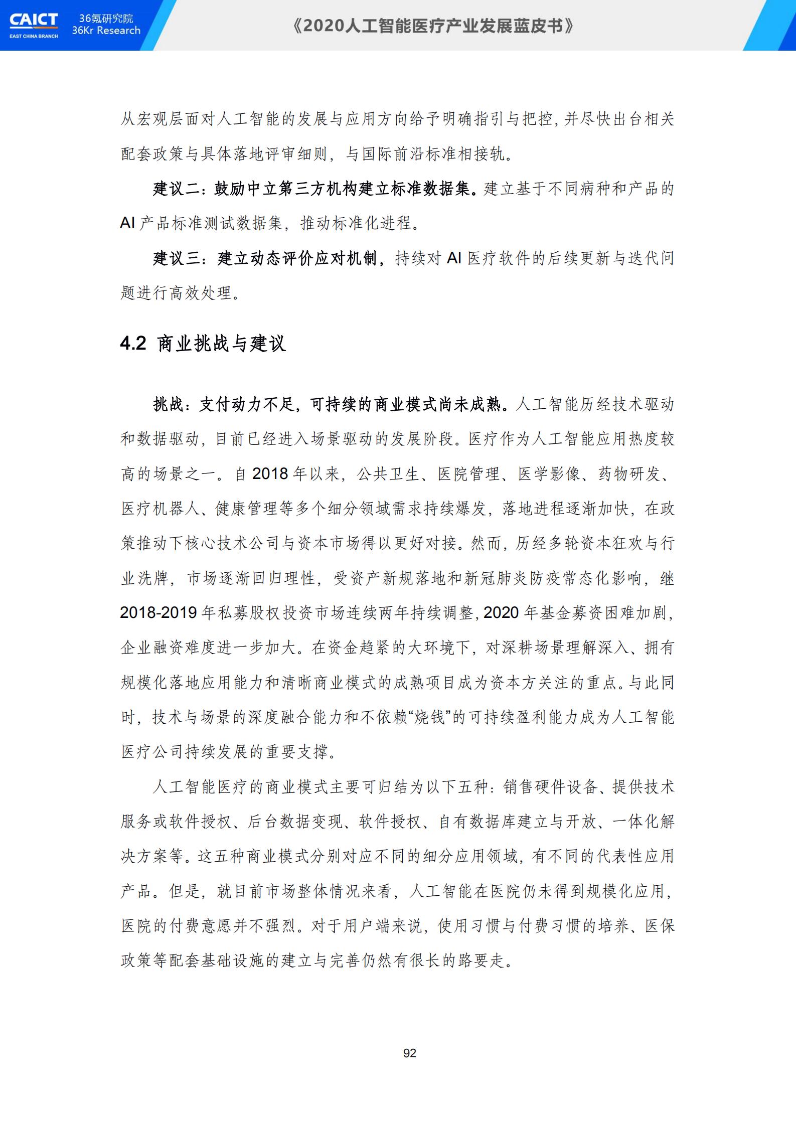 中国信通院联合36氪研究院重磅发布《2020人工智能医疗产业发展蓝皮书》