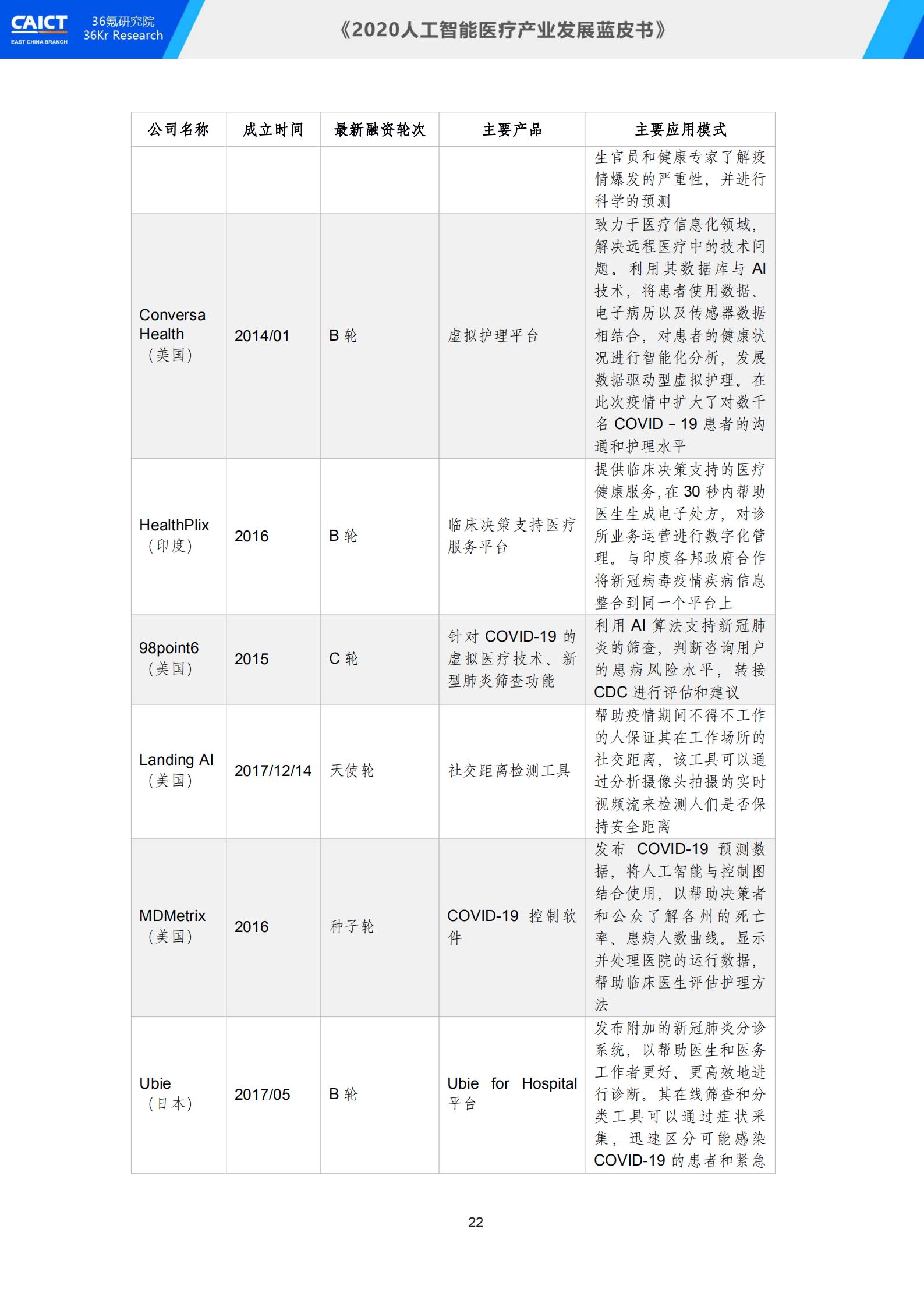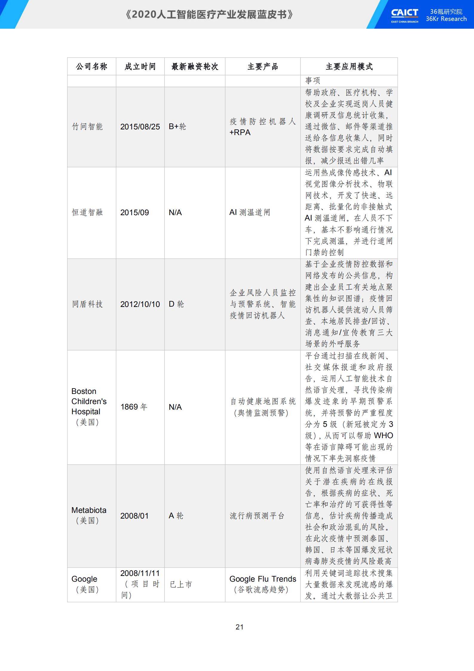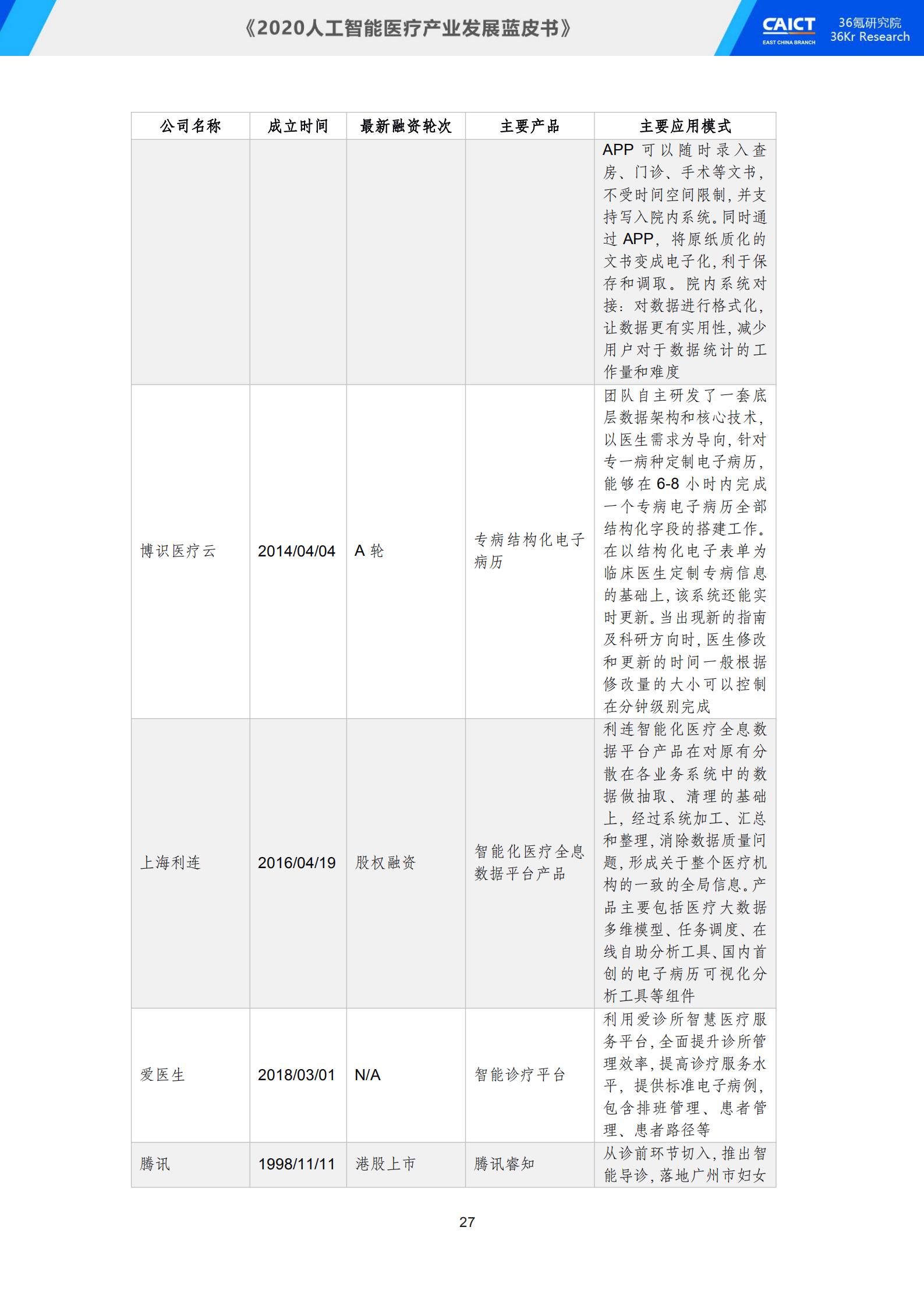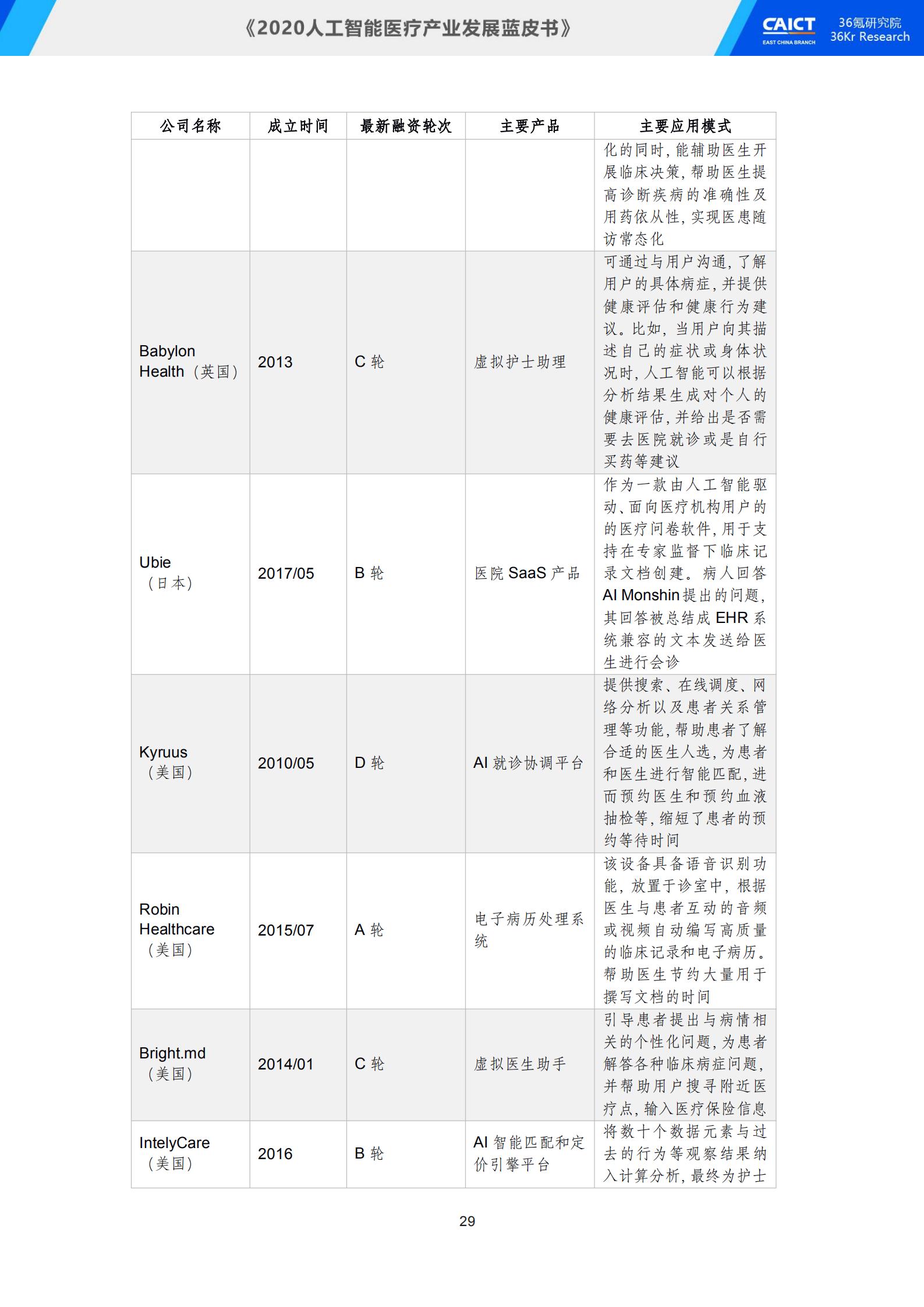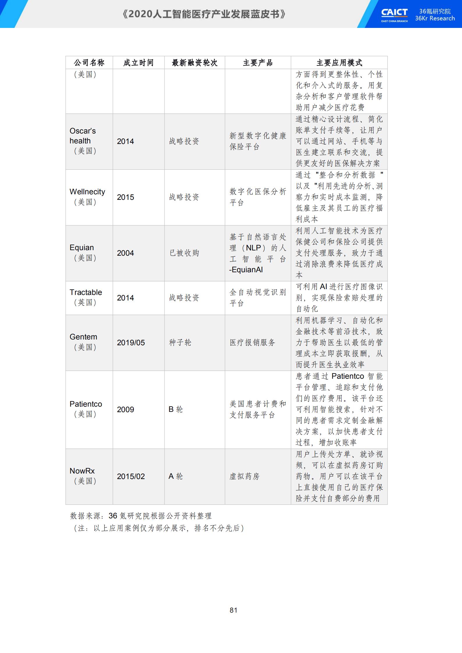 中国信通院联合36氪研究院重磅发布《2020人工智能医疗产业发展蓝皮书》