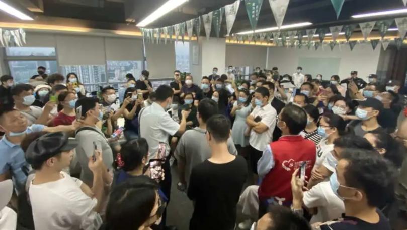▲深圳小鹰找房租客和房东维权现场,图片来自凤凰WEEKLY财经。