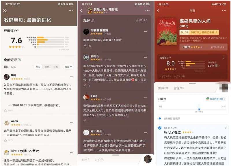 豆瓣用户“史迪仔”表示:“我会去翻阅数百条评论,之前是看哈利波特,然后一些喜欢的电影也会看,还有那些宗教悬疑的。”