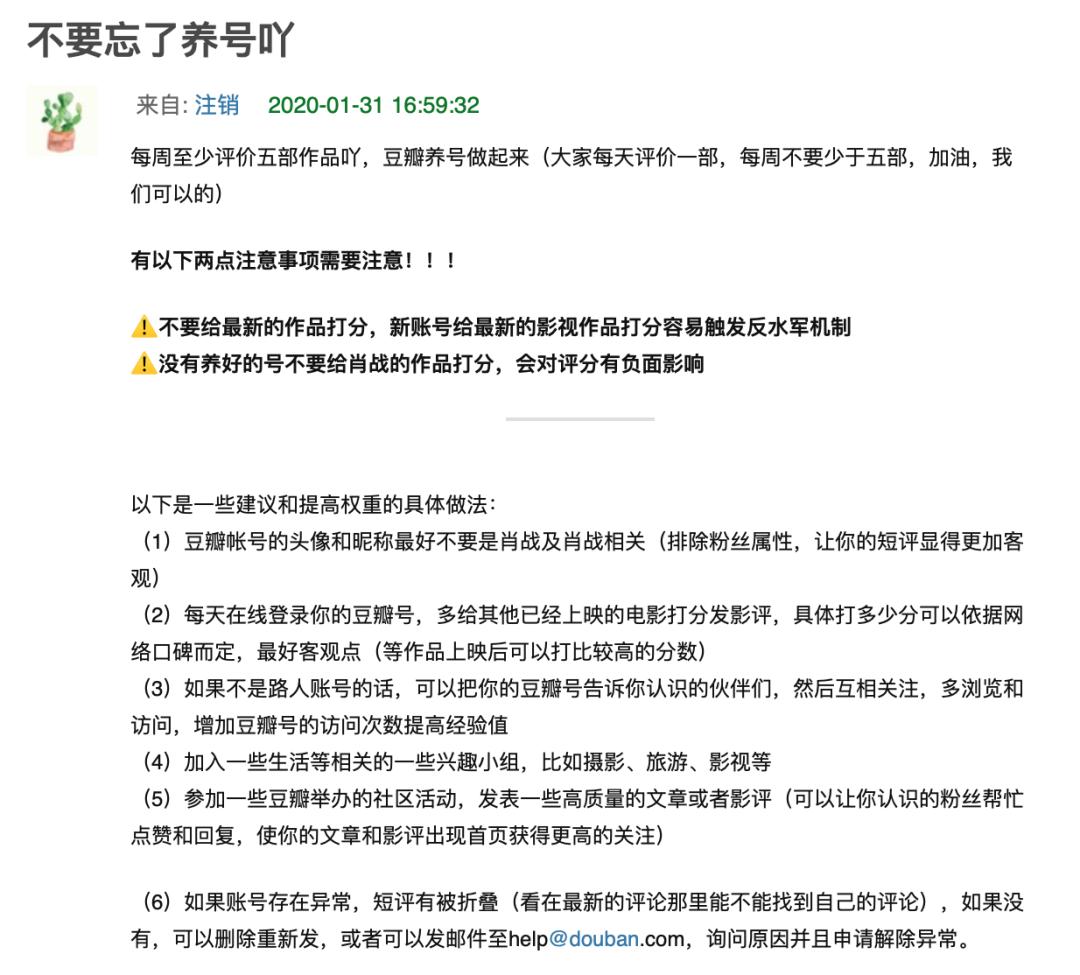 事实上,豆瓣的水军不仅猖獗而且非常了解豆瓣的“反侦察”技术,“控评”、“养号”、“打分”,职能多种多样。