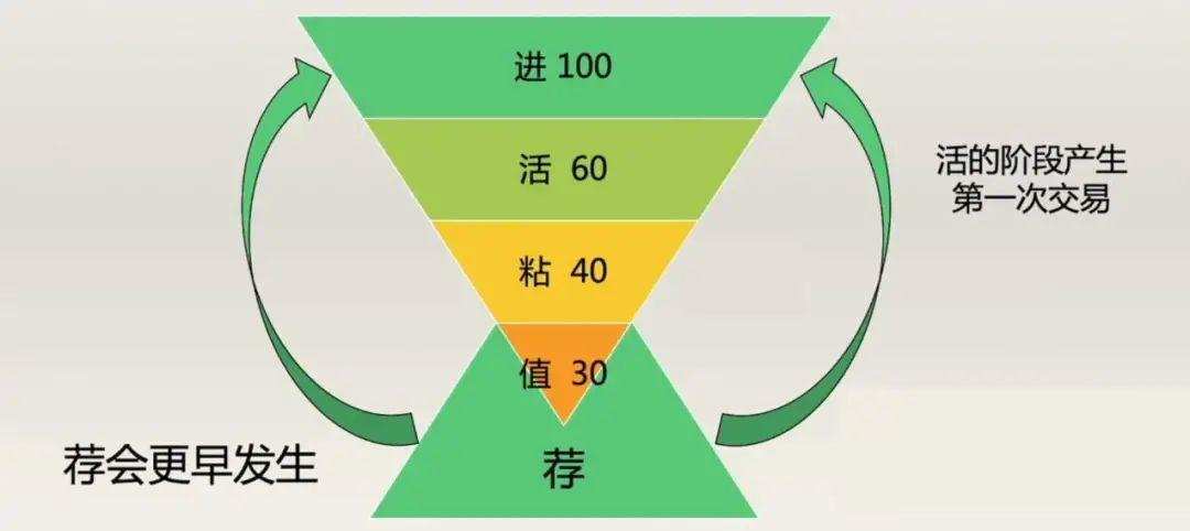 『进活粘值荐』模型中的『活』,会把重心放在“促进与用户达成第一次交易”。