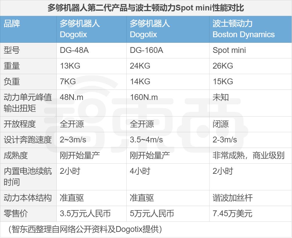 ▲Dogotix第二代四足仿生机器人对标波士顿动力Spot mini,数据来源:机器人大讲堂公开数据及Dogotix提供