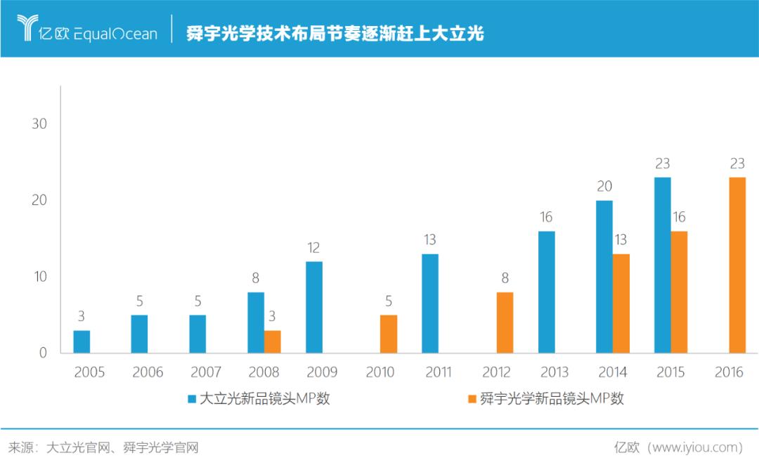 2017年舜宇研发投入达到11.7亿元,远超大立光的7.2亿元。此后更是不时传出舜宇手机镜头单月出货量超过大立光的消息。