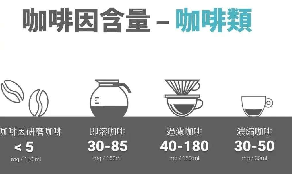 一杯意式浓缩咖啡的咖啡因含量可能低至30mg,而一杯滴滤咖啡的咖啡因含量可以高达200mg。
