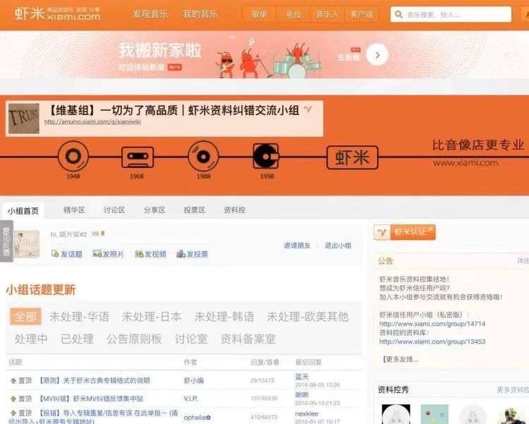 对我来说,关于虾米最美好的回忆也都集中在小组气氛很热闹的那段时期。那时候的虾米网是跟豆瓣、微博和人人网类似的。体验上不是单纯是听歌的地方,而是一个社区,也给我们提供了一个交流这些“学术”东西的场所。用户在这里很有归属感,可以交到很多朋友。