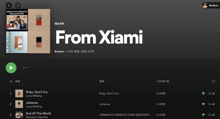 用户在Spotify上建立虾米歌单