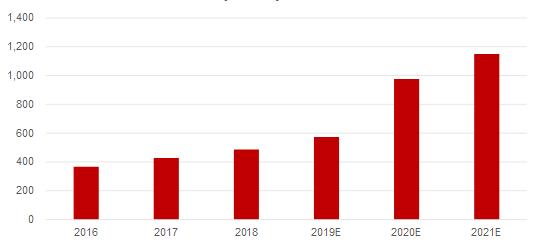 根据赛迪顾问数据,2016年中国车联网市场规模366.4亿元,到2018年上升至486亿元,近三年增速稳定在14%左右。在政策和5G的推广驱动下,预计2021年,车联网市场规模有望突破1000亿元。