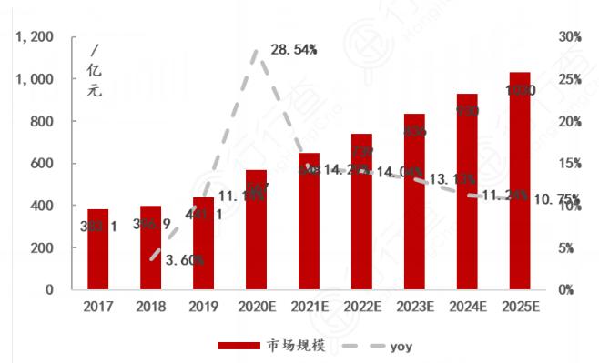 据机构预测,2020年,我国智能座舱市场规模为567亿元。随着5G逐步落地主机厂纷纷推出搭载智能座舱产品的新车型,智能座舱产品渗透率加速提升,预计2025年市场规模有望达到1030亿元,年均复合增速(CAGR)约为12.68%。其中,车载信息娱乐系统和液晶仪表盘将成为最大的细分市场。