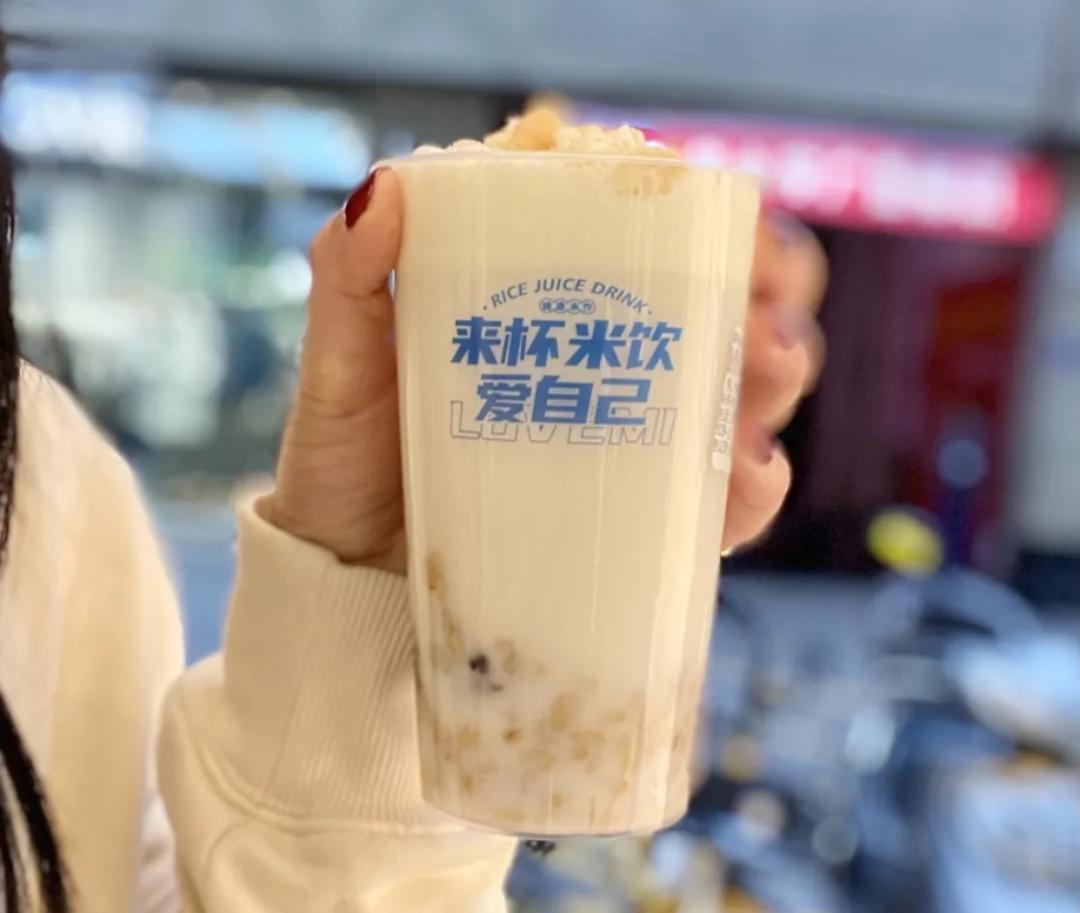 长沙新晋品牌“来杯米饮”,以米浆代替茶汤作为基底,加上当下流行的各种辅料,变成一杯自带健康属性的“奶茶”。