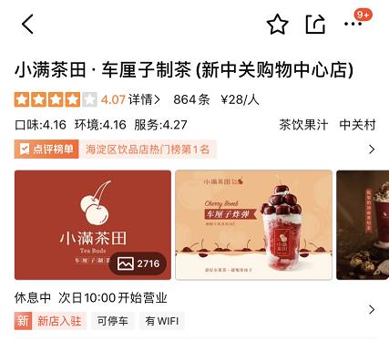 相继开的新中关店,实现了单日最高1500杯的成绩,40平米的门店,月营业额能做到50万+,是北京海淀区饮品热门榜第1名。