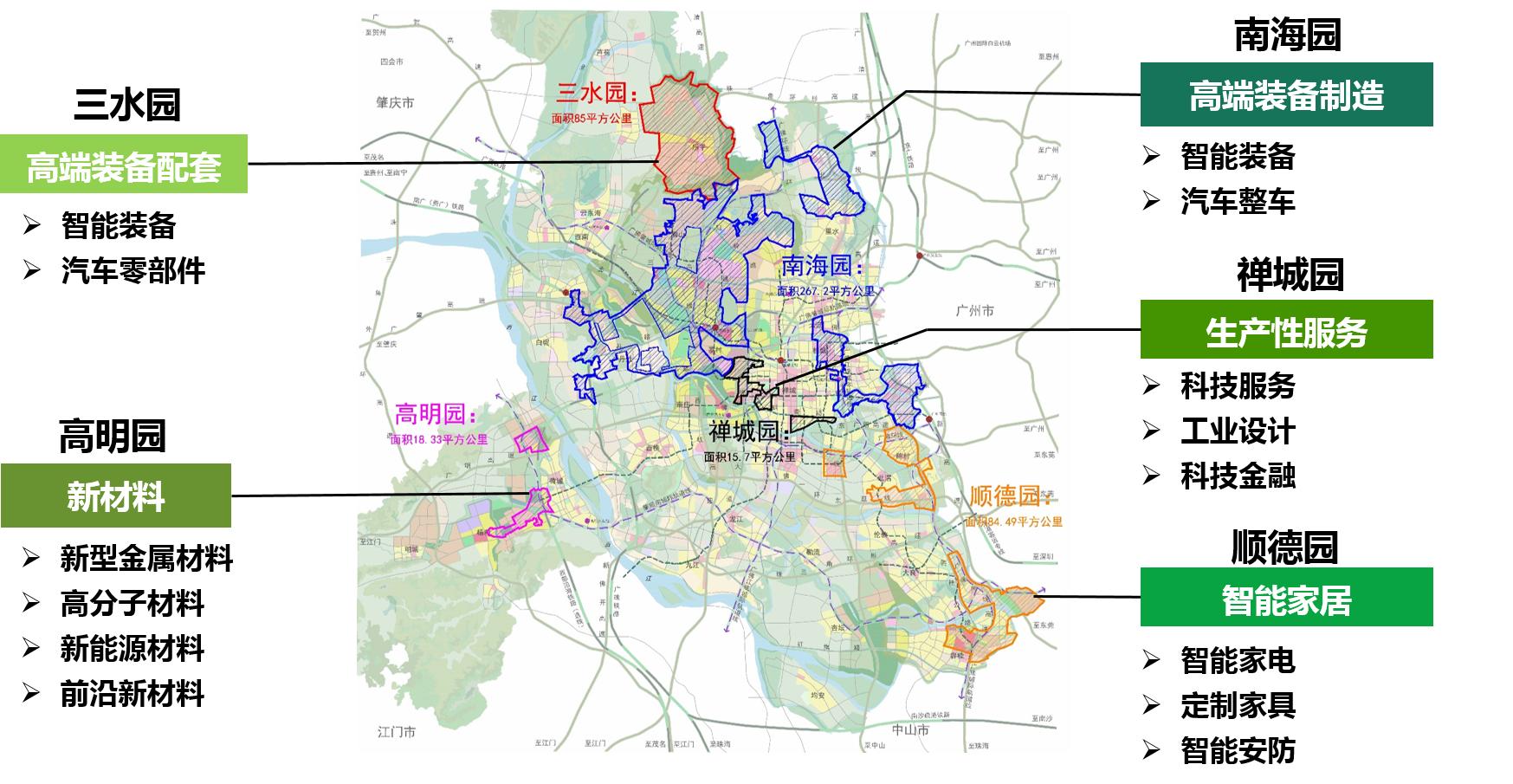 佛山高新技术产业开发区(以下简称佛山高新区)是1992年经国务院批准建设的国家高新区,是佛山推动粤港澳大湾区建设的重大战略平台、珠三角国家自主创新示范区的主体园区、粤桂黔滇高铁经济带合作试验区(广东园)的主要载体,也是国家创新型特色园区、国家知识产权试点园区、广东省金融科技产业融合创新综合试验区、珠江西岸装备制造产业创新基地。现实行“一区五园、统一规划、分园管理、创新服务”的管理模式,园区管理面积为470.72平方公里,下辖禅城园、南海园、顺德园、高明园、三水园。