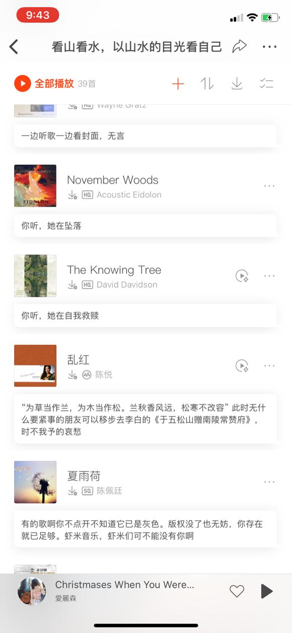 “在虾米上可以自己创歌单,然后写一些对歌的感受,这些年的情绪我都是写在动态里面,回看收藏列表时,会很清楚的回想起来那个时期你听到这个歌是一种什么样的心情,你经历了什么事情。”柏岑说道。