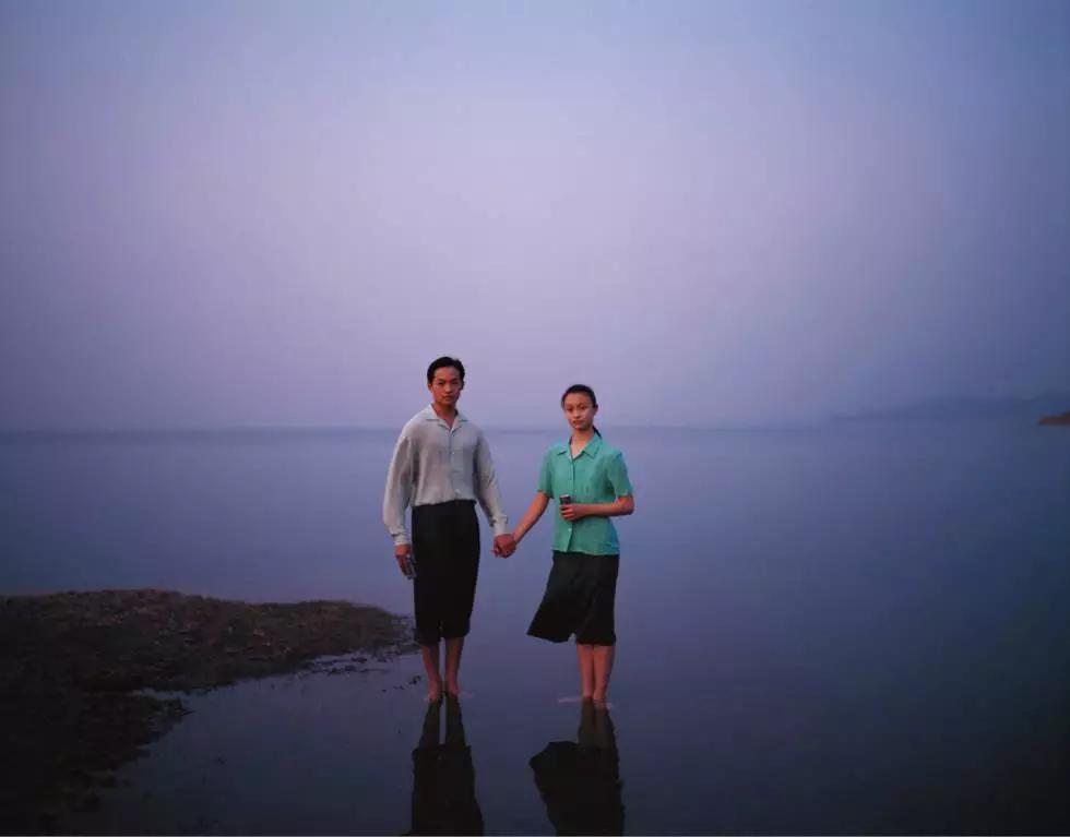 1992年在桂林拍摄的三对年轻夫妇是三得利广告中的经典。其中一组照片中,夫妇两个人穿着简朴的衬衣,站在河岸上旁,坚定地望向前方。自媒体容品牌将这种意境描述为“广阔感”,一望无垠的河、质朴的年轻夫妇,人在自然的衬托下显得渺小,这种“广阔感”很有中国的气息。[10]