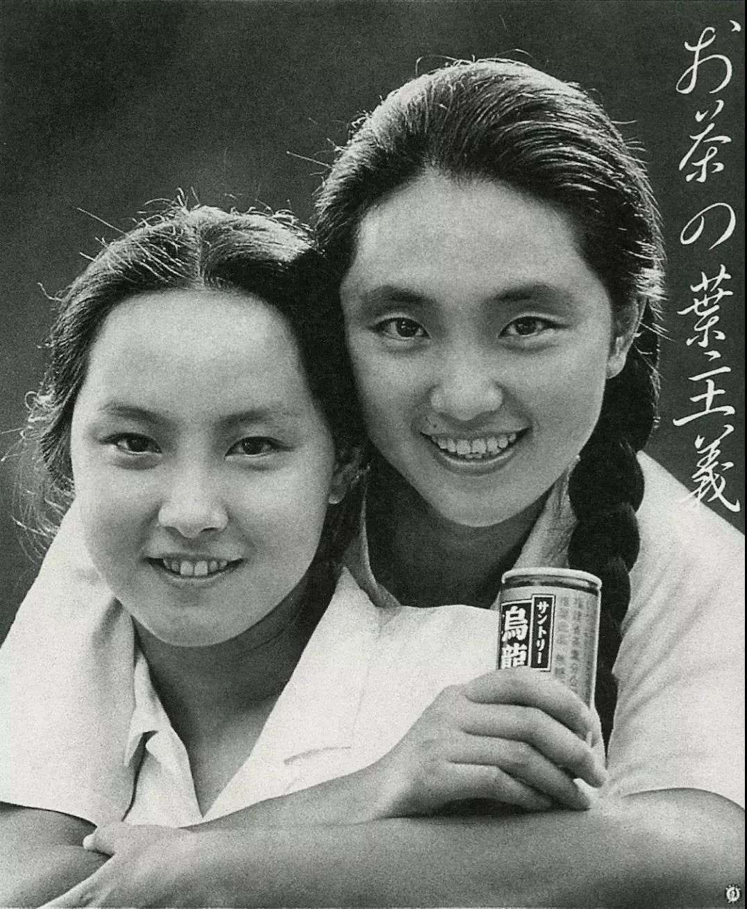 女孩们手持三得利互相依偎,从黑白画面中可以感受到的是质朴与生命力。
