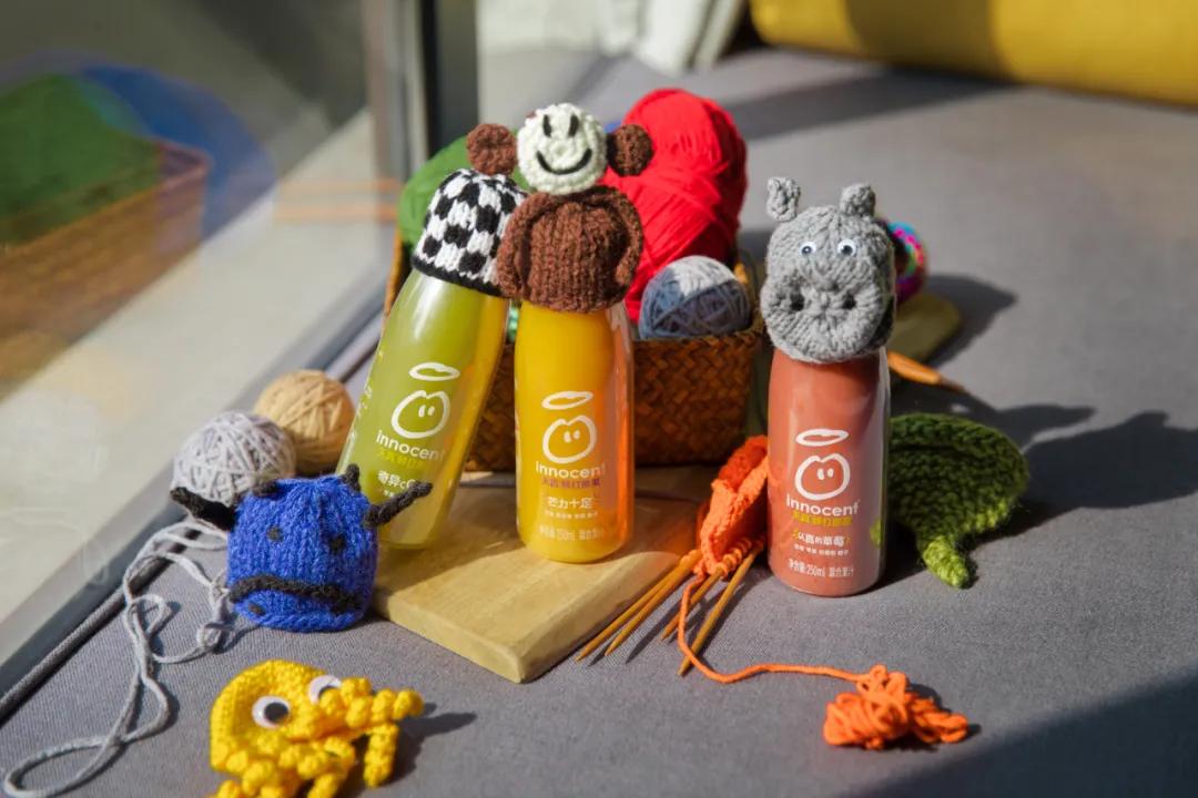 原本光裸的果汁瓶戴上了小帽子,这些毛线帽都由受助的老人与志愿者们手工编织而成,而每卖出一个,innocent便会向Age UK捐助0.25英镑,用于帮助老人们。