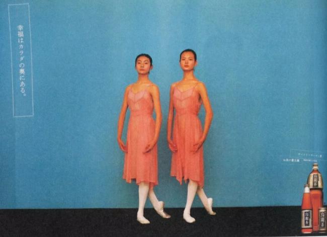 1990 年,上田義彦达的拍摄不再拘泥于茶叶原产地,而是将三得利与芭蕾舞演员、武术演员......这些具有中国韵味的象征符号联结,三得利也不再作为硬性植入,而是作为一种类似于精神支撑的存在,出现在画面的边缘。[10]