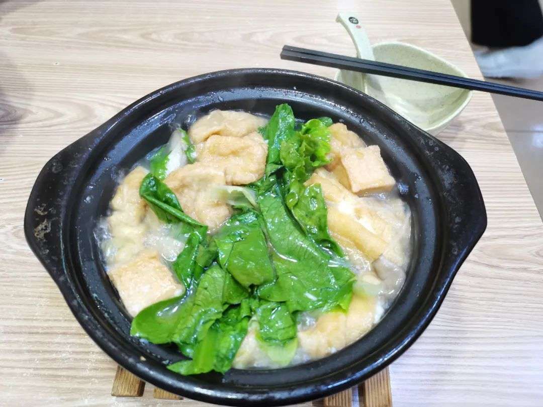 砂锅端上来时水还在滚,老板服务周到,上砂锅时顺便拿碗筷给你盛。