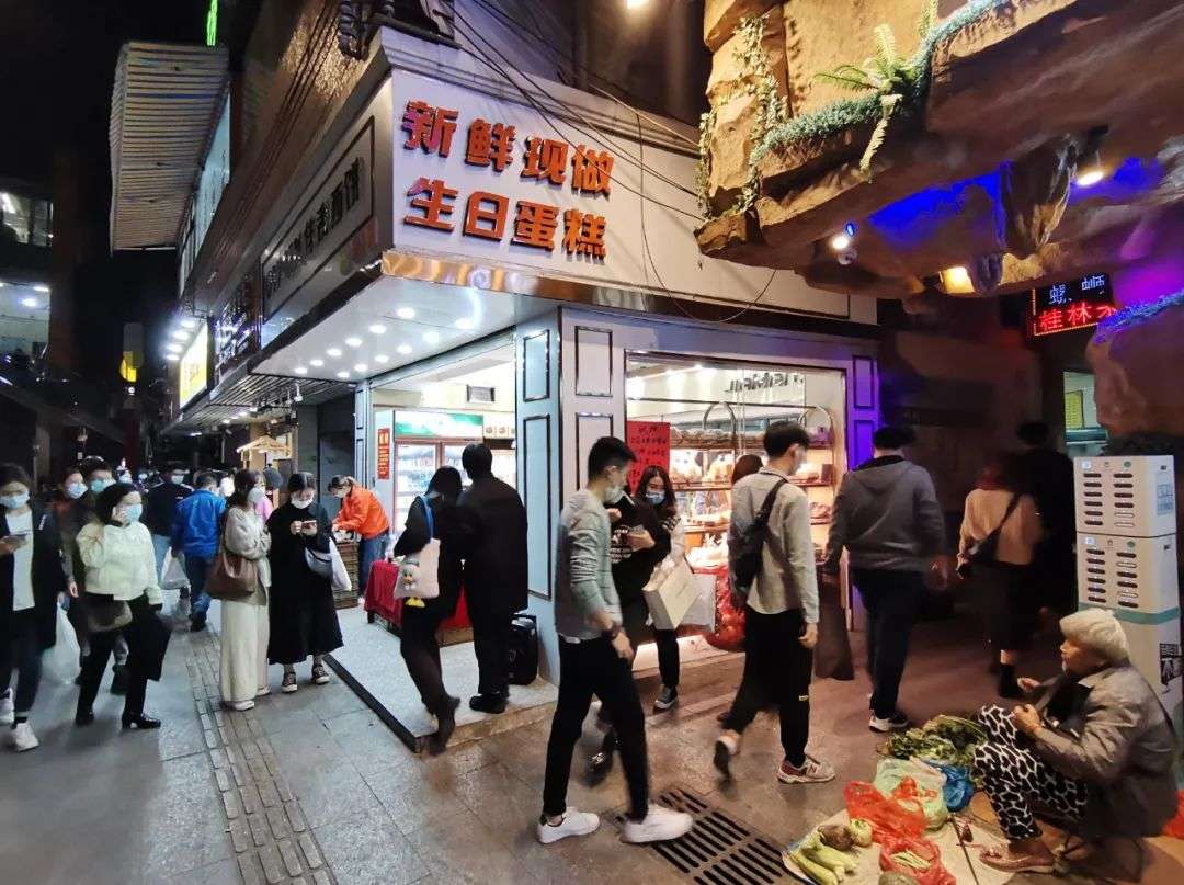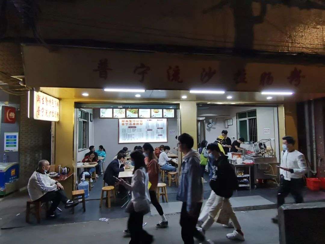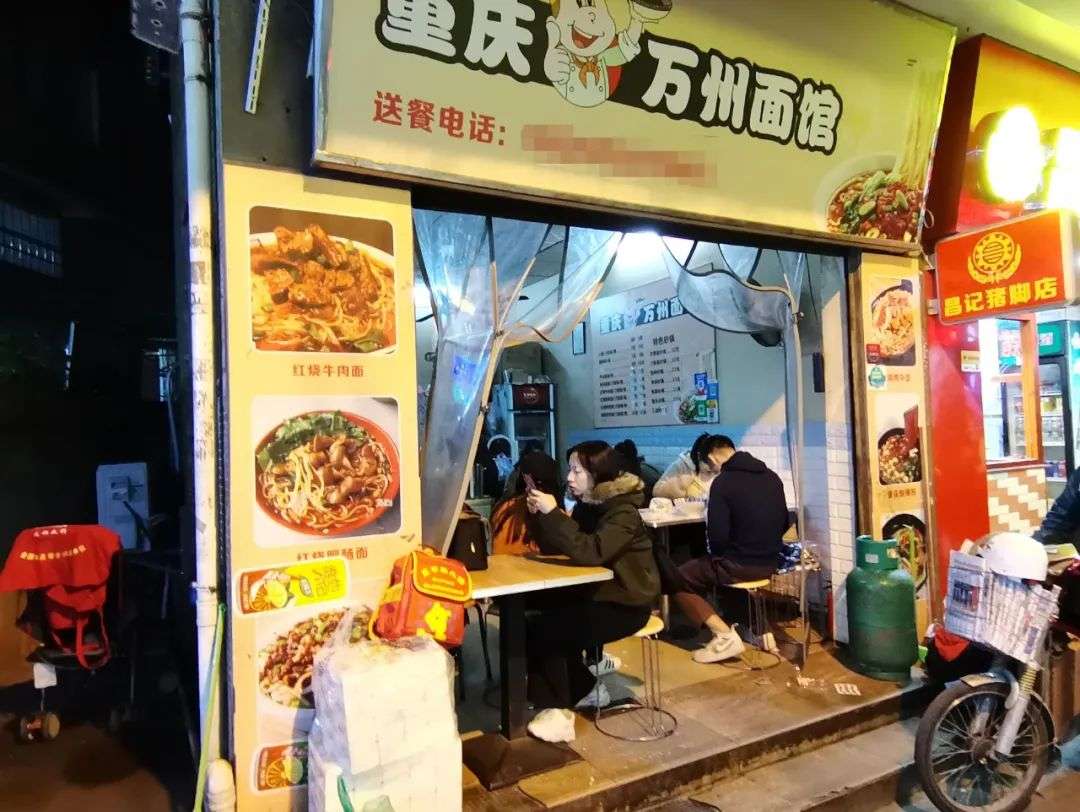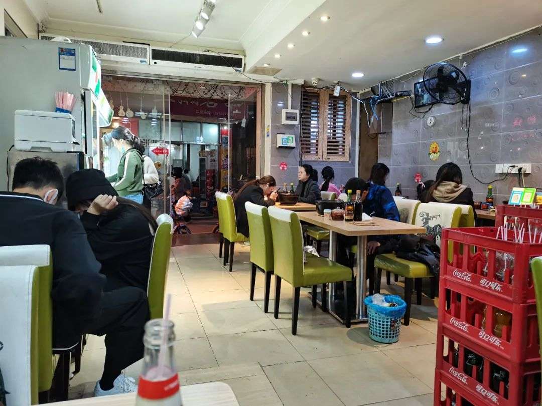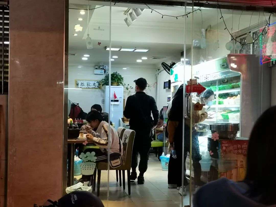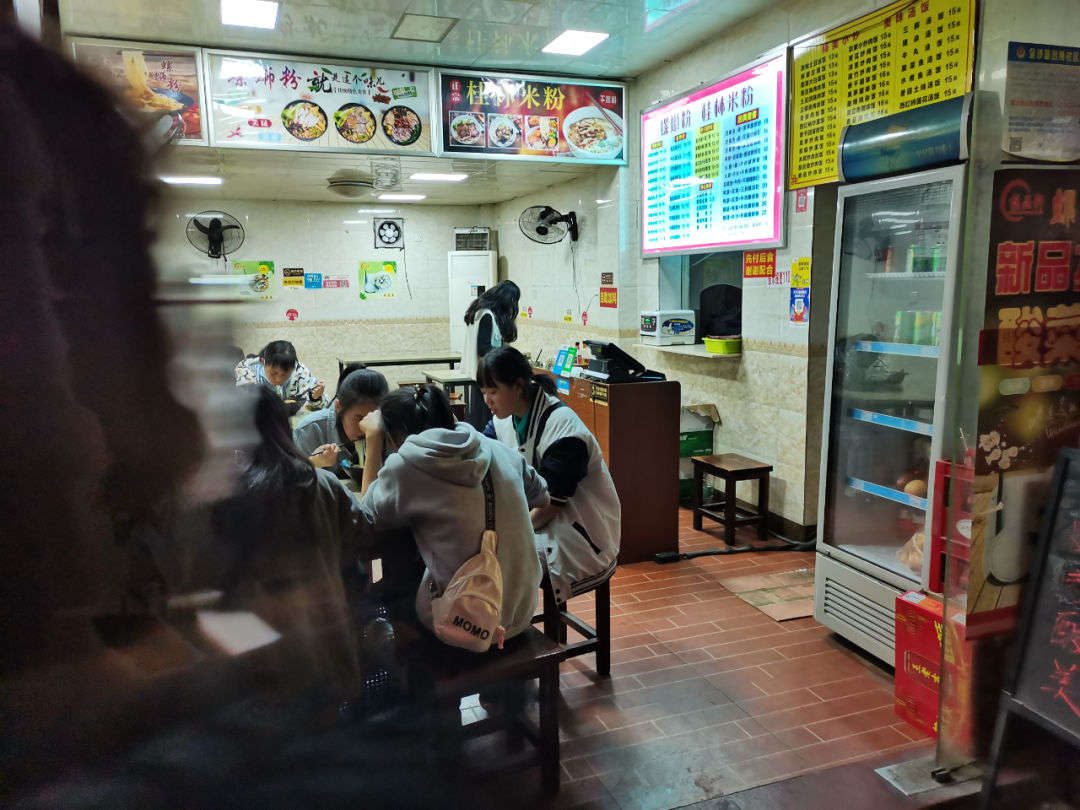 蛋糕店往下是螺狮粉店,有8 个顾客,学生居多。