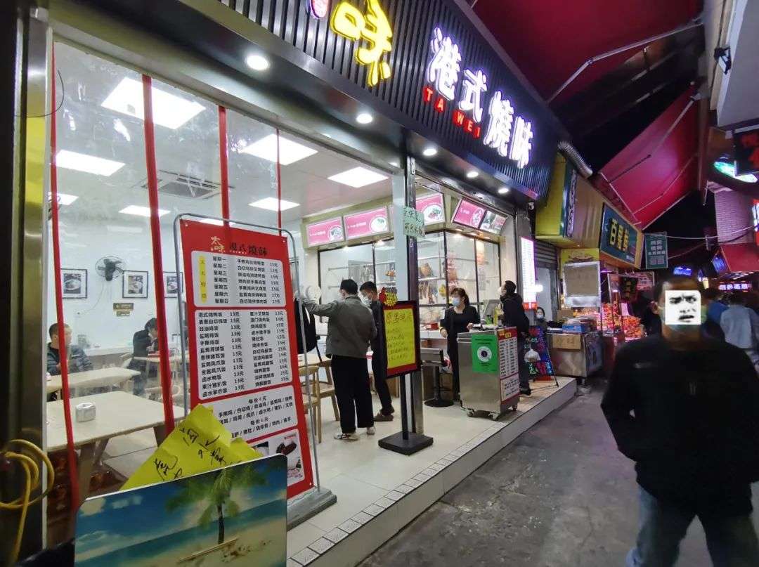 再往下是一家港式烧腊店,面积是螺狮粉店的2倍,但只有7 个顾客。