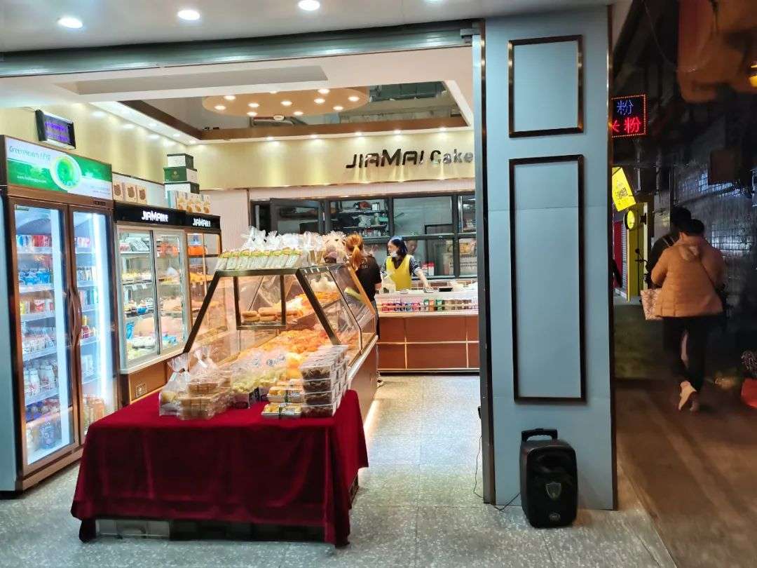入口的左手边是一家蛋糕店,顾客人数为0