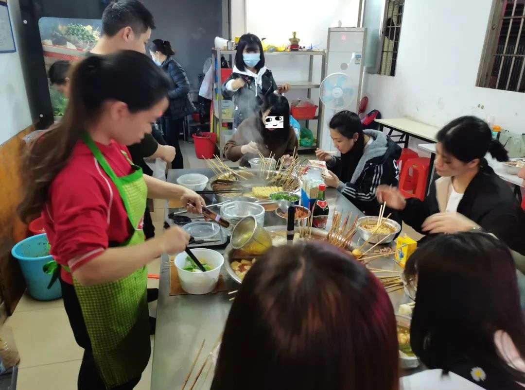 只有一张大桌子和两口火锅,看中什么串让老板拿,大家围坐在火锅边吃,每次过去观察人都围得满满的。