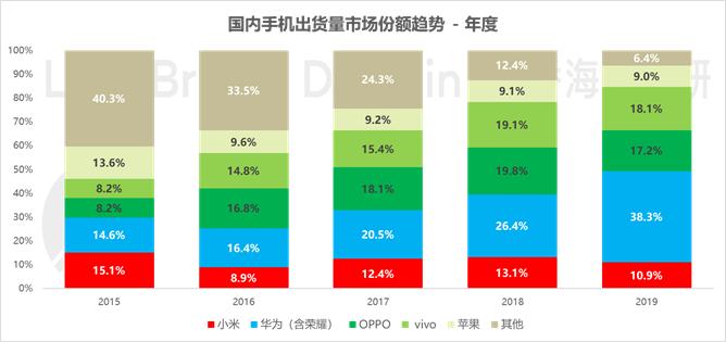 而中国五大智能手机品牌市场占有率提升的过程,主要就是扫荡杂牌智能机的过程,也是下沉市场用户真正体验手机的 “智能” 特征时候。
