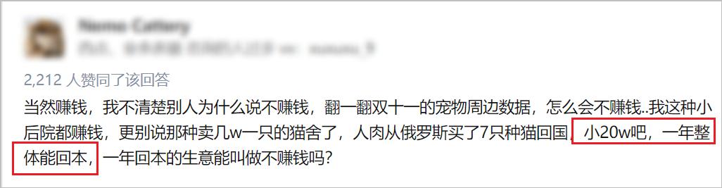 对比来看,后院猫舍卖 1000 是暴利,正规猫舍卖 5000 赚的却只是成本。