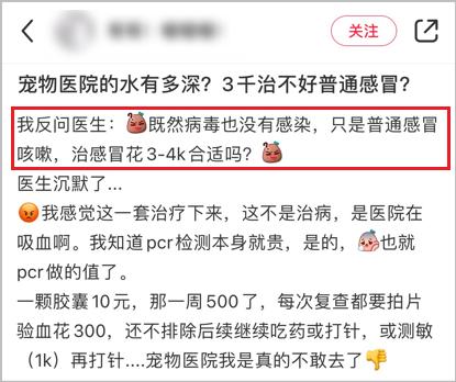 “ 3000 治不好普通感冒”、“一个猫藓看了 5 万”……网友的控诉比比皆是,甚至花了大价钱还治不好宠物的病。