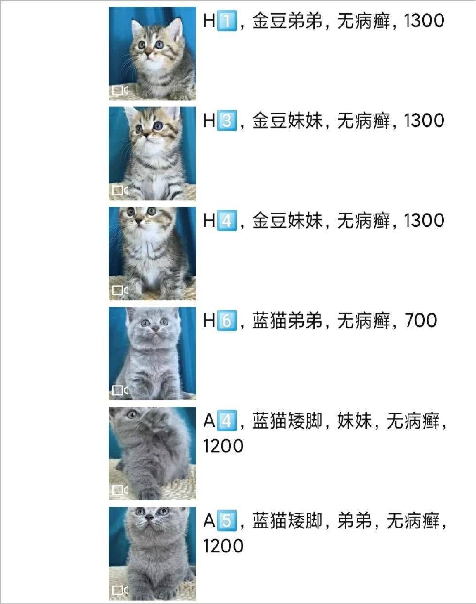 而在后院猫舍,蓝猫 700 、金豆 1300 就可以搞定(市场价 3000+),布偶也只要 2000 元(纯种市场价上万),价格低得不可思议。