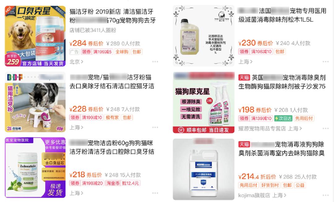 还有宠物去味的除臭剂、洁牙粉,也都要 200、300 元,卖的比人用的还贵……