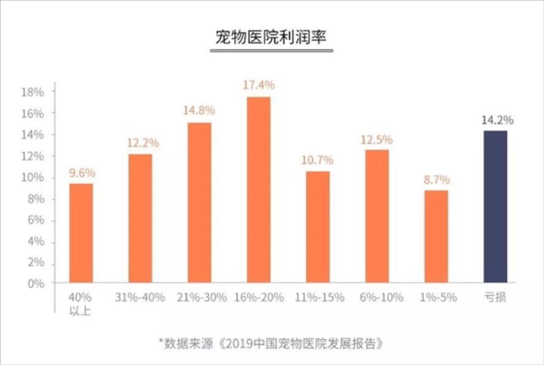 这份《2019中国宠物医院发展报告》显示,近三分之一的宠物医院利润率超过了 20 %,还有一小撮医院的利润率更是突破了 40 %。