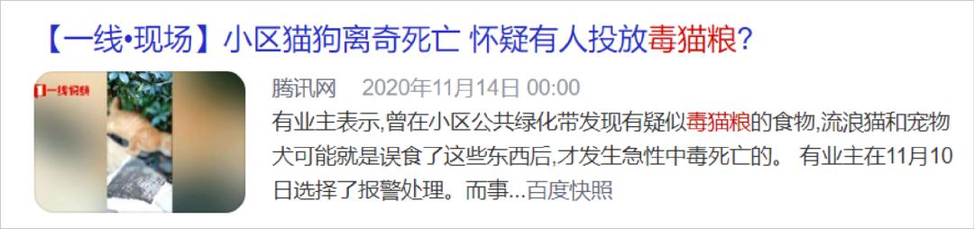 最近,我们小区有不少宠物猫狗离奇死亡,甚至上了腾讯新闻,新闻报道称这可能和“毒猫粮”相关。